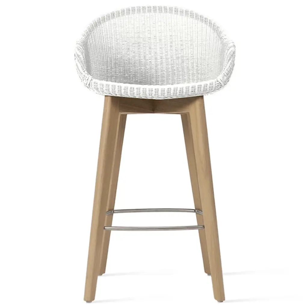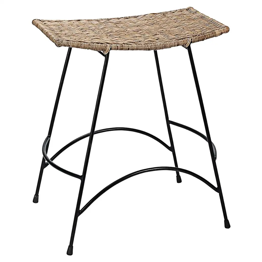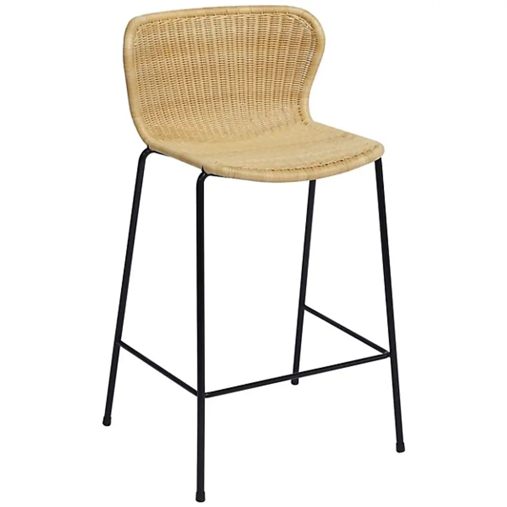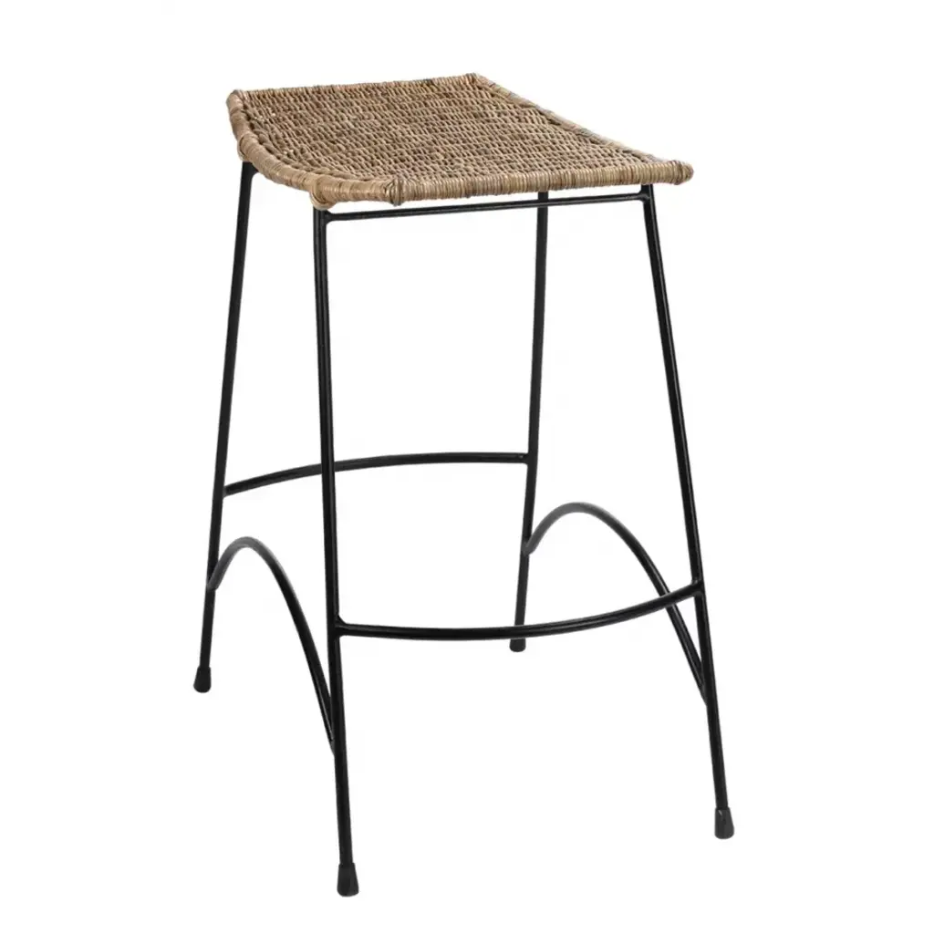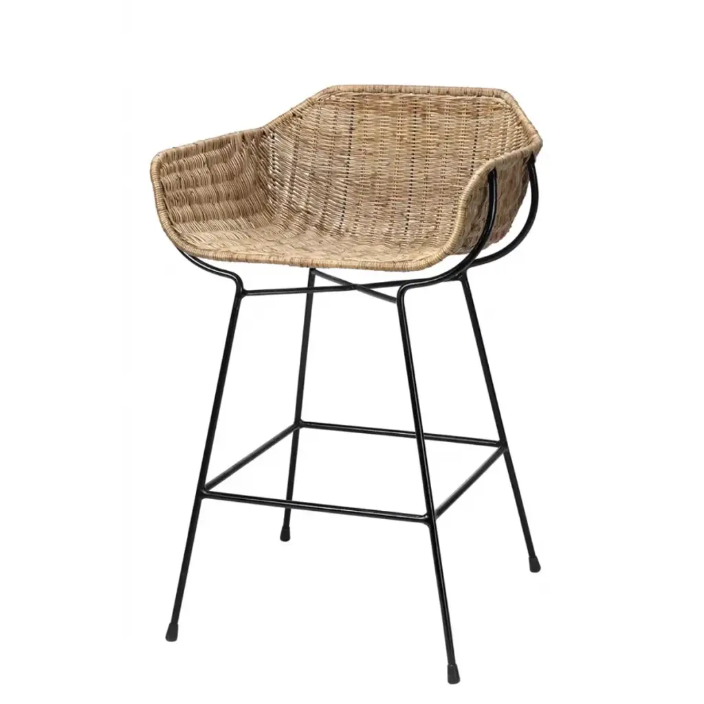 This elegantly arced counter stool comfortably wraps you in woven rattan, placed on refined black metal legs makes the perfect easy stool for any coastal or bohemian space.