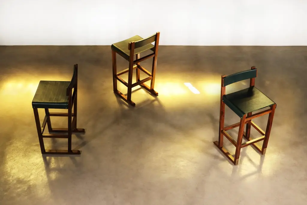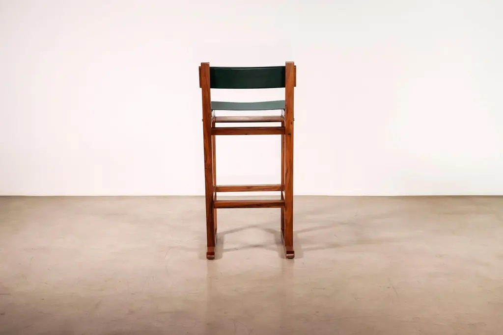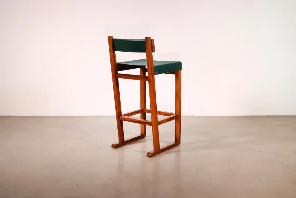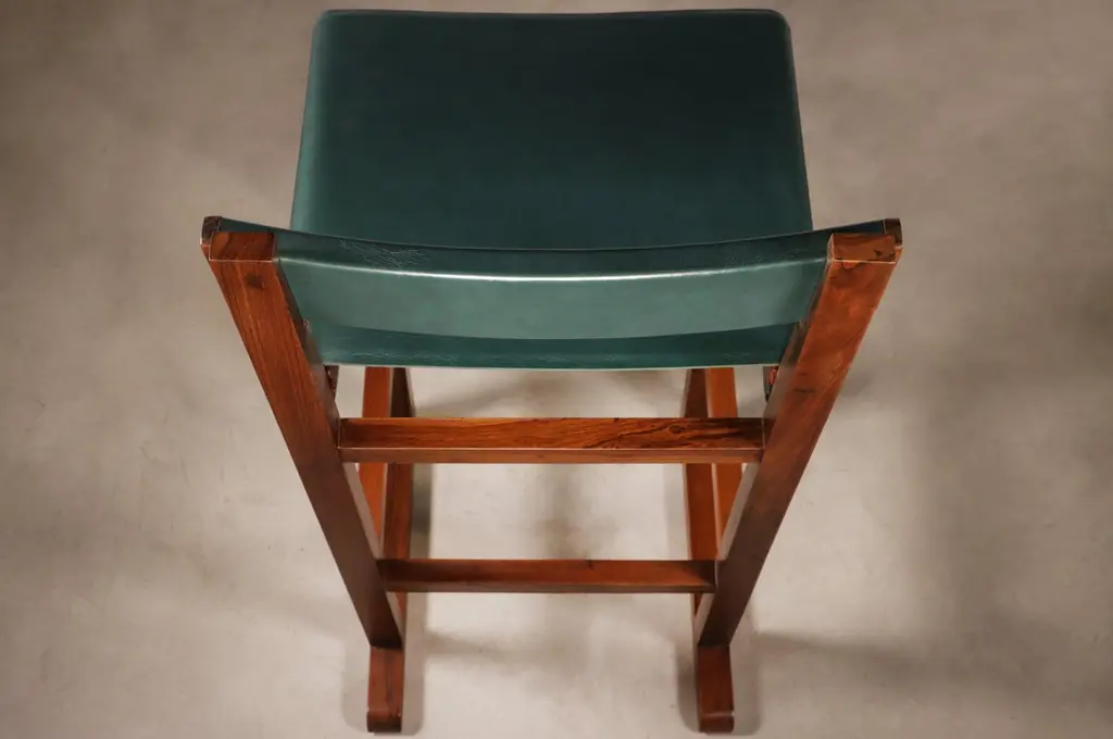 Wood Counter Stool With Slung Leather Seat And Bronze From Costantini, Piero