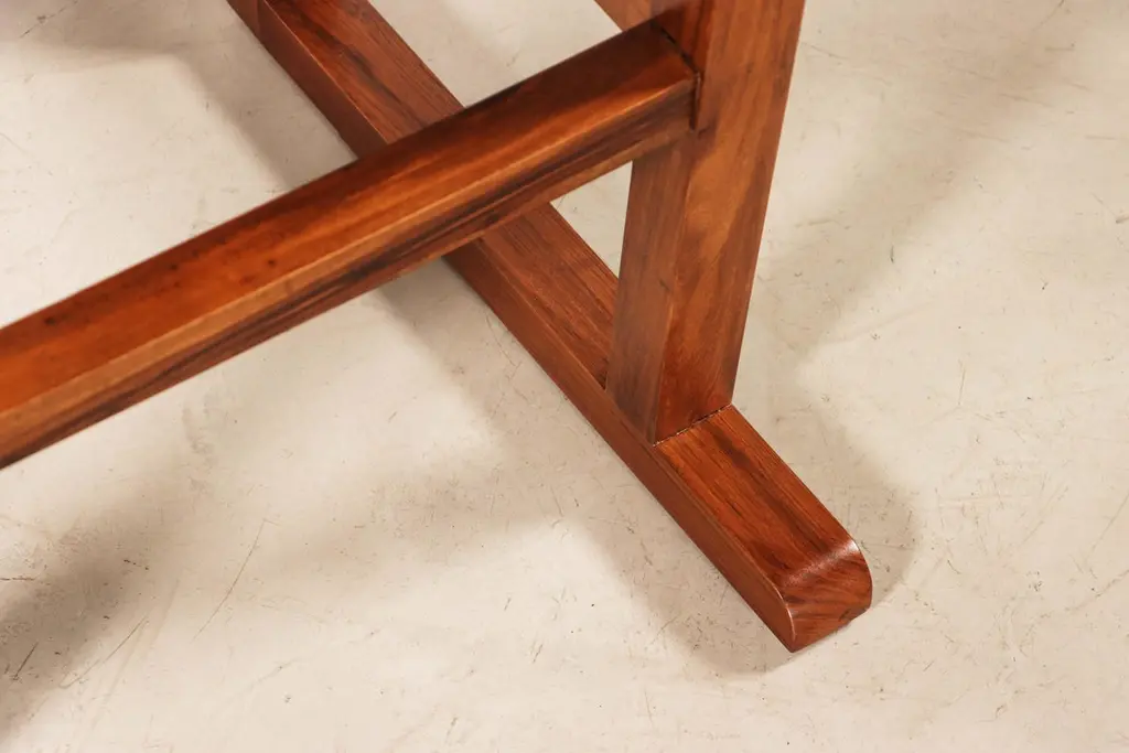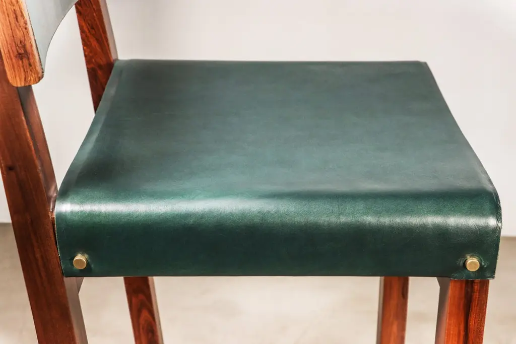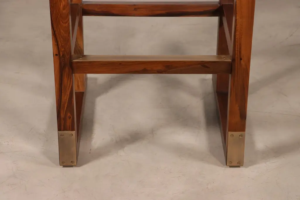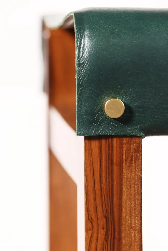 Costantini prides itself in using the hardest and most beautiful hardwoods in the construction of its line of seating. The Piero Stool features a solid Argentine Rosewood frame with a slung leather seat, a leather-wrapped wood back, and a burnished bronze footrest. Usually in stock and ready for quick-ship, and available in several standard leathers as well as COM/COL.Measures: 18” D 18.5” W 35” H 26” SH as shown in Argentine rosewood finish.
