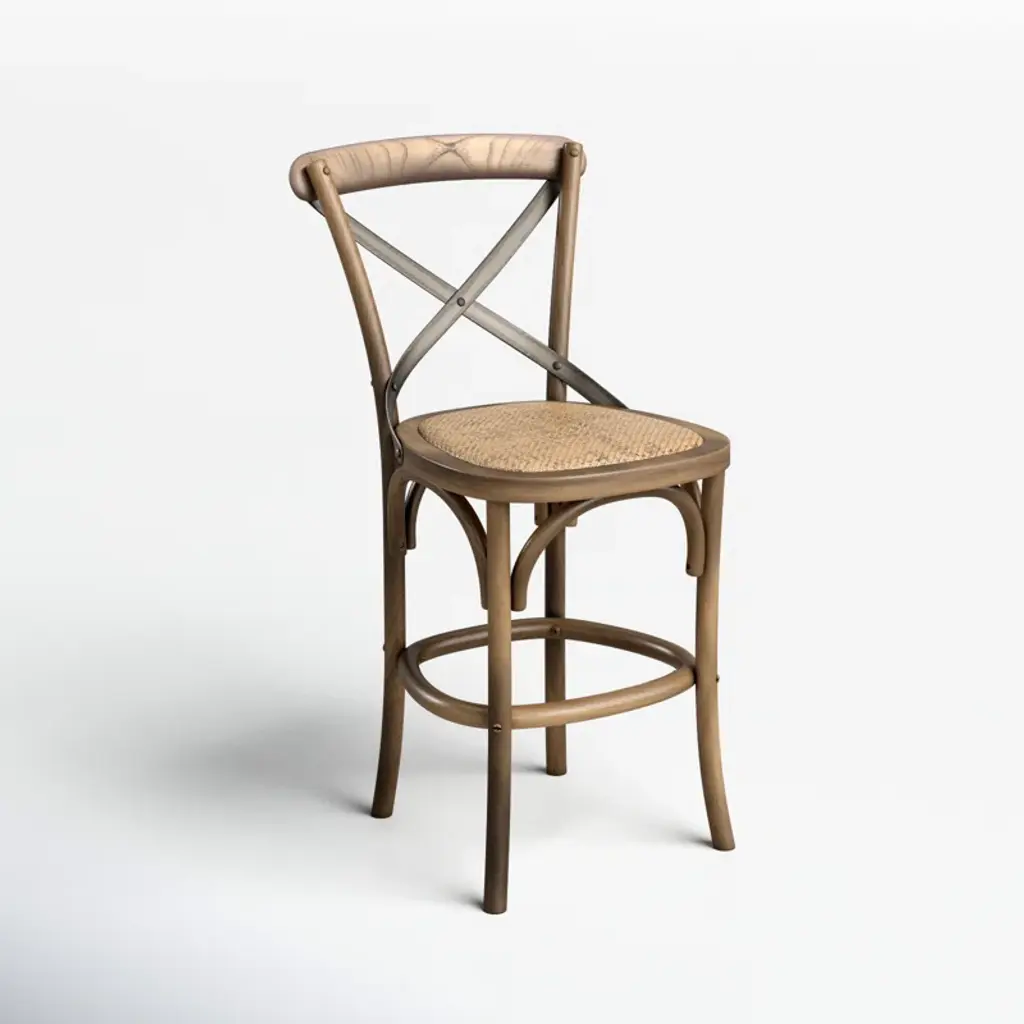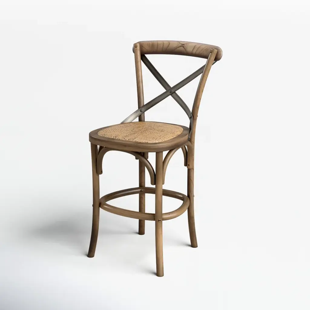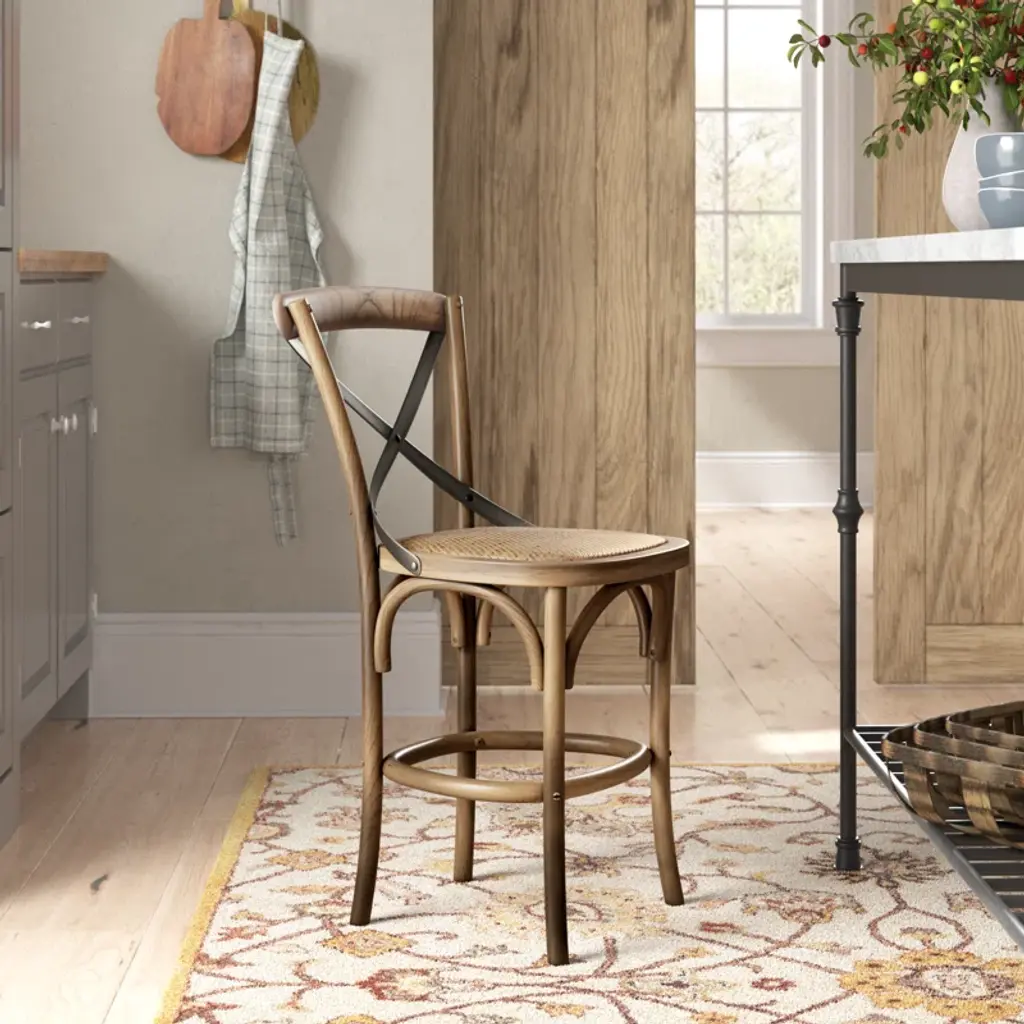 This counter stool has rattan details and a mixed-material design that make it right at home in any kitchen or breakfast nook. It has a metal X-shaped back for a bit of contrast, plus its woven wicker seat gives it a bit of coastal style. Its frame is made from solid wood that's kiln-dried for added sturdiness. And this stool also has a convenient footrest that gives tired feet a place to land. Our favorite feature of all? This wooden stool arrives fully assembled, so no need to grab the screwdriver.