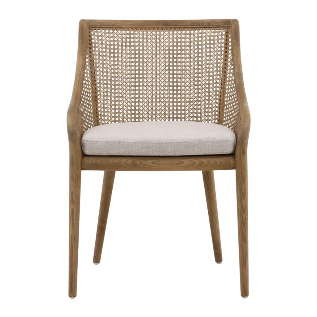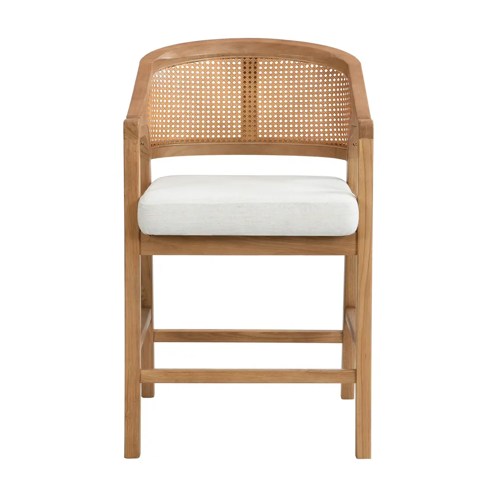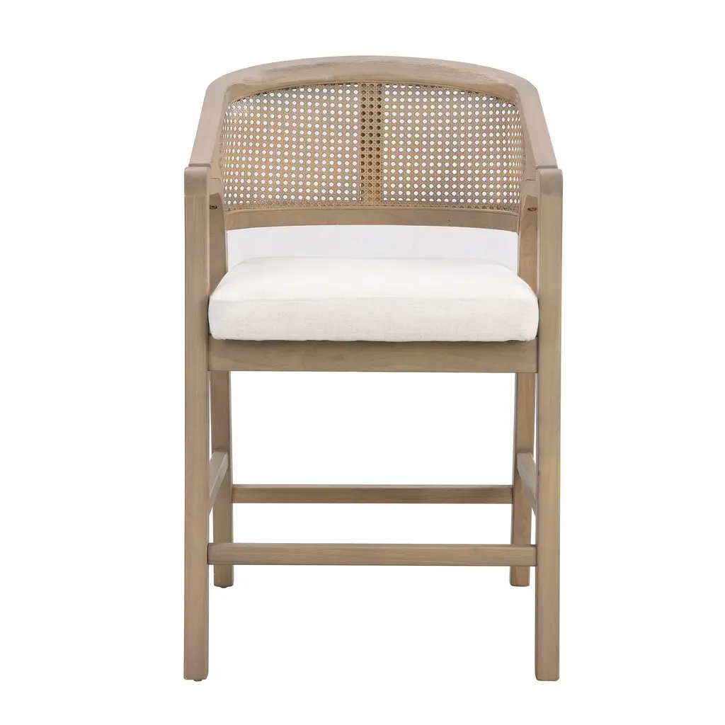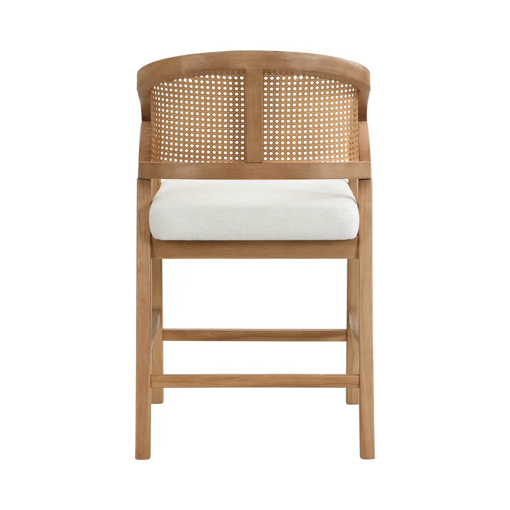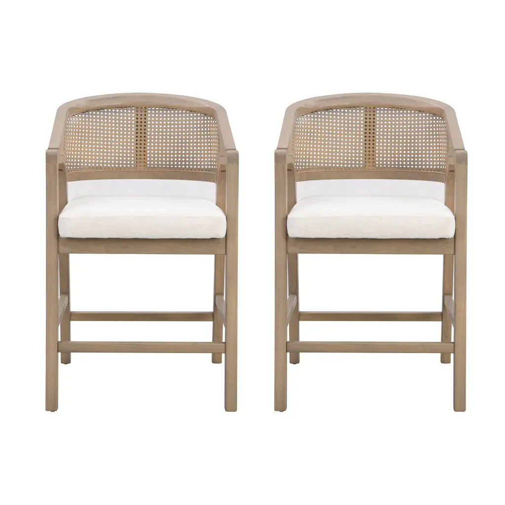 Wooden Frame Counter Stool With Rattan Back, Set Of 2 - Natural