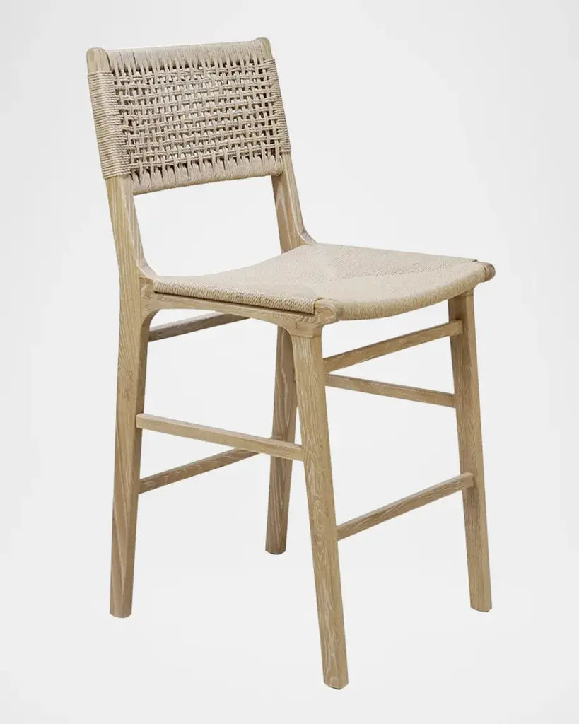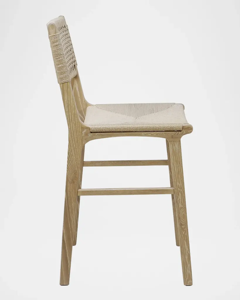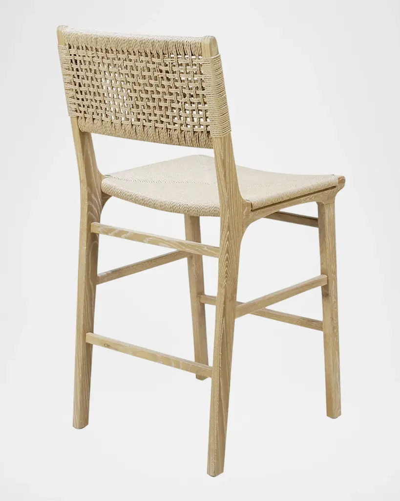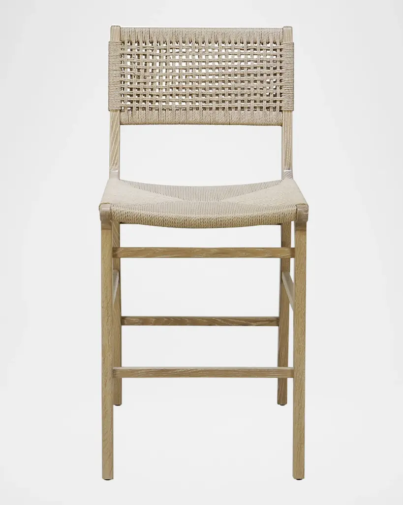 The Astrid Counter Stool is a can't-miss complement to your kitchen island. With a woven back and rush seat, Astrid seamlessly blends casual elegance and rustic charm for your farmhouse, country, or boho-inspired home. Reinforced stretchers and footrests provide exceptional durability for this high-style perch. Handcrafted of oak wood and rope Overall, approx. 19.75"W x 23"D x 43"T Seat height, 27.25" Wipe clean Weight, 35.0 lbs Imported Boxed weight, approximately 40.0 lbs Proposition 65 warning for California residents Shipping Direct from Vendor, usually ships within 30 business days. About Worlds Away: Worlds Away transcends design boundaries, offering a curated collection of furniture and decor that embodies global sophistication. With an eclectic mix of styles, its pieces are a fusion of luxury and functionality, creating spaces that resonate with individuality and cosmopolitan charm.