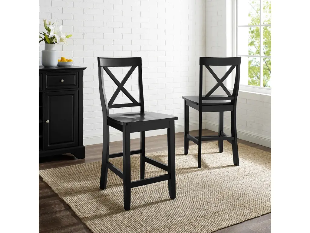 The X-Back 2pc Counter Stool Set is crafted for style and long-lasting comfort. With a curved x-back and contoured seat, these stools are an ideal addition to your kitchen or dining area. The stool set’s 24-inch seat height pairs perfectly with a counter height dining table or breakfast bar. Bring classic design to your home with the X-Back 2pc Counter Stool Set.