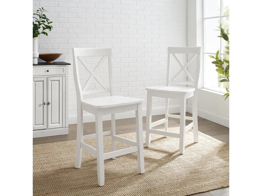 The X-Back 2pc Counter Stool Set is crafted for style and long-lasting comfort. With a curved x-back and contoured seat, these stools are an ideal addition to your kitchen or dining area. The stool set’s 24-inch seat height pairs perfectly with a counter height dining table or breakfast bar. Bring classic design to your home with the X-Back 2pc Counter Stool Set.