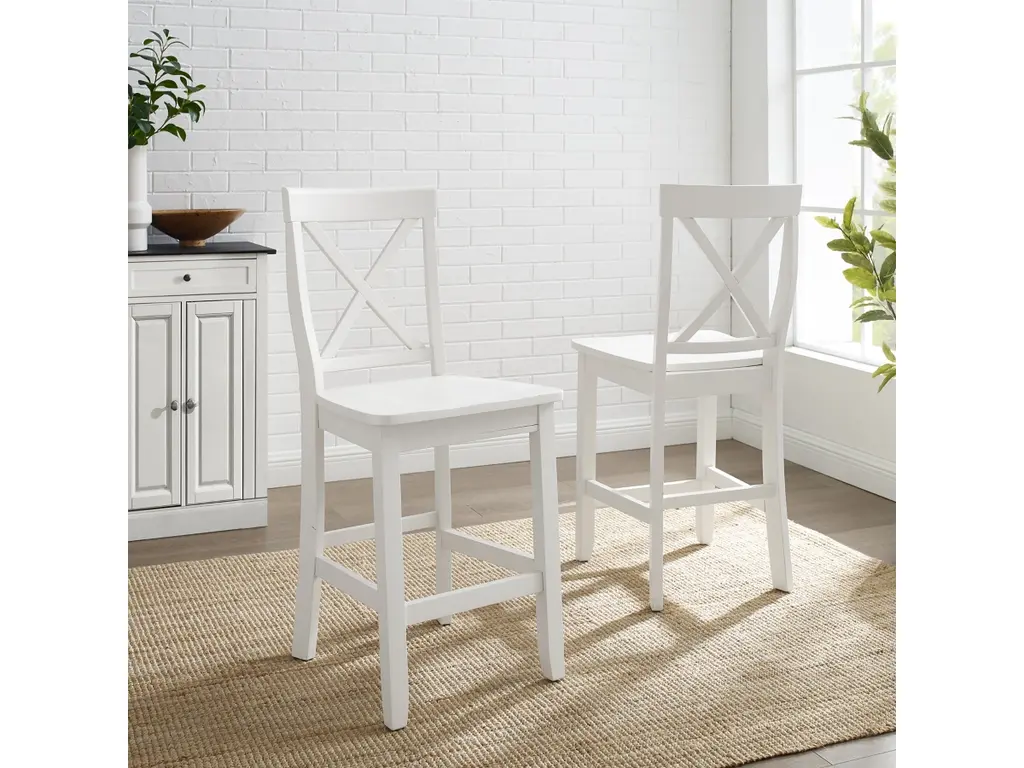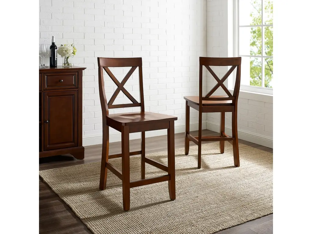 The X-Back 2pc Counter Stool Set is crafted for style and long-lasting comfort. With a curved x-back and contoured seat, these stools are an ideal addition to your kitchen or dining area. The stool set’s 24-inch seat height pairs perfectly with a counter height dining table or breakfast bar. Bring classic design to your home with the X-Back 2pc Counter Stool Set.