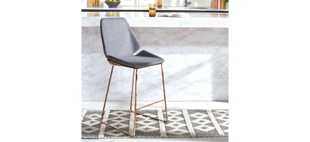 Effortlessly elevating any dining area's aesthetic, this Yara Counter Stool is a high-style icon of chic contemporary living. Yara's artistically designed soft grey seat provides dramatic decorative contrast to its open gold stainless steel frame, giving endless airy appeal in any interior.
