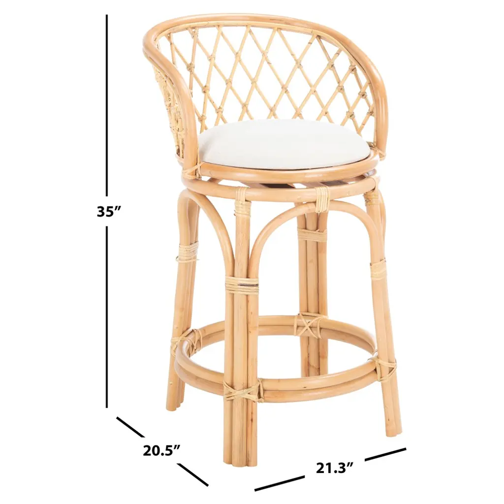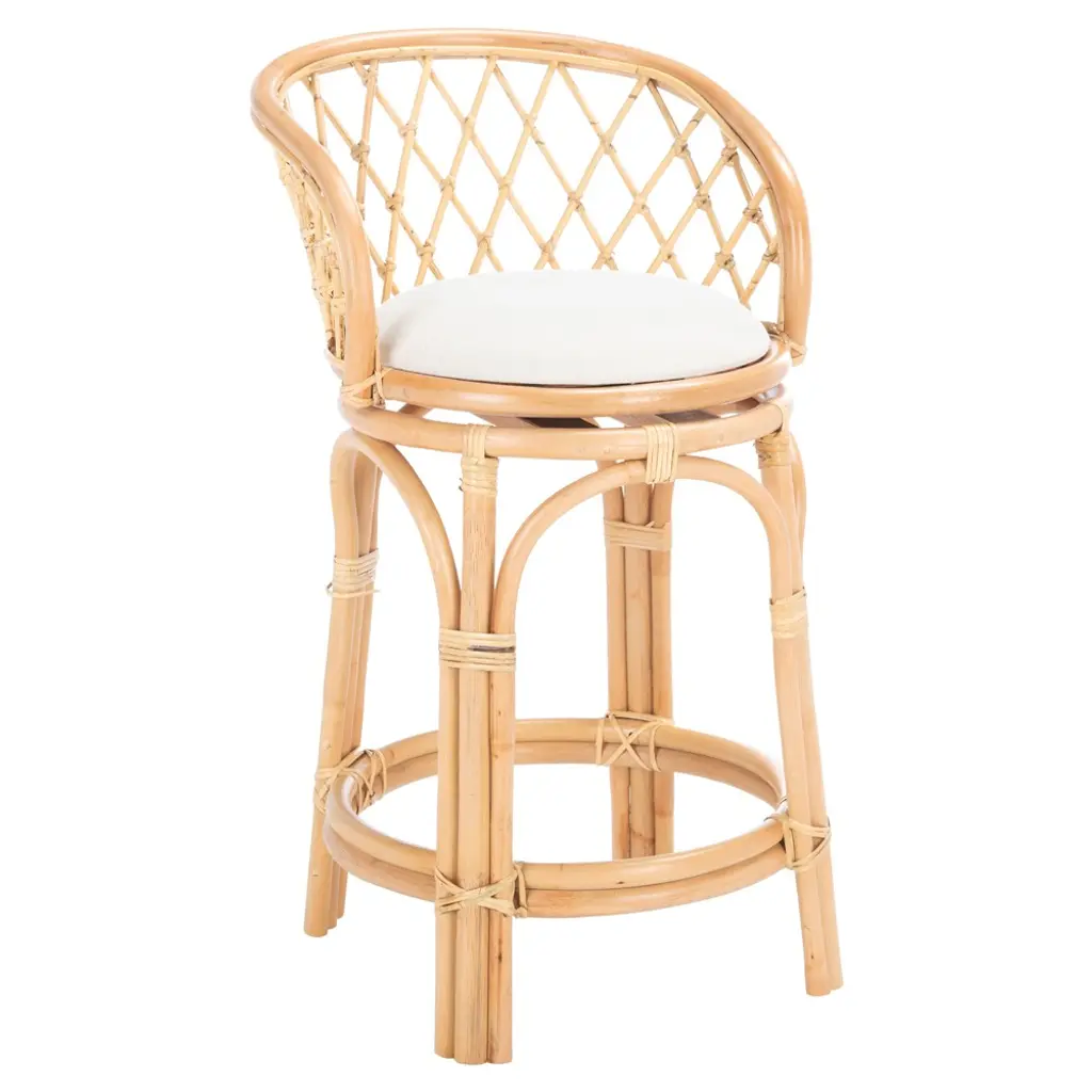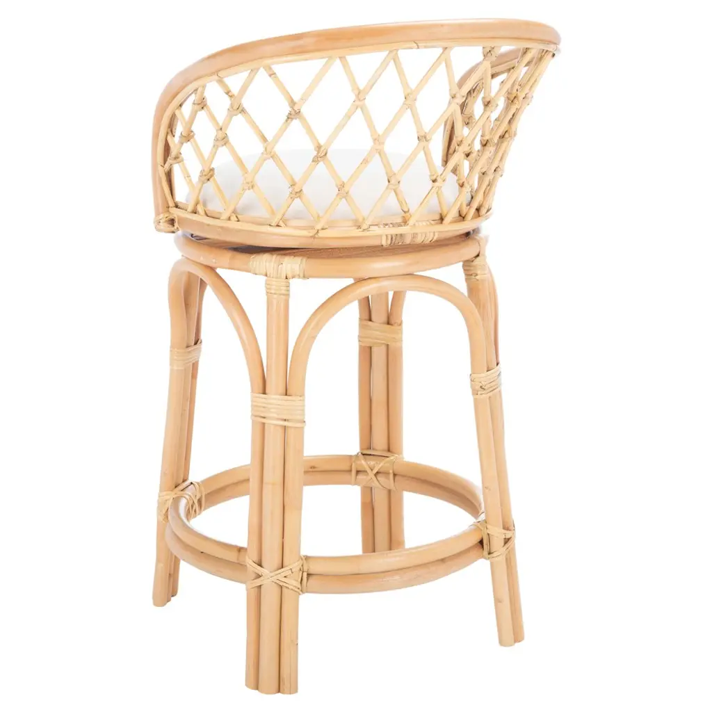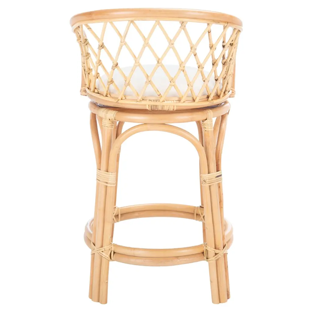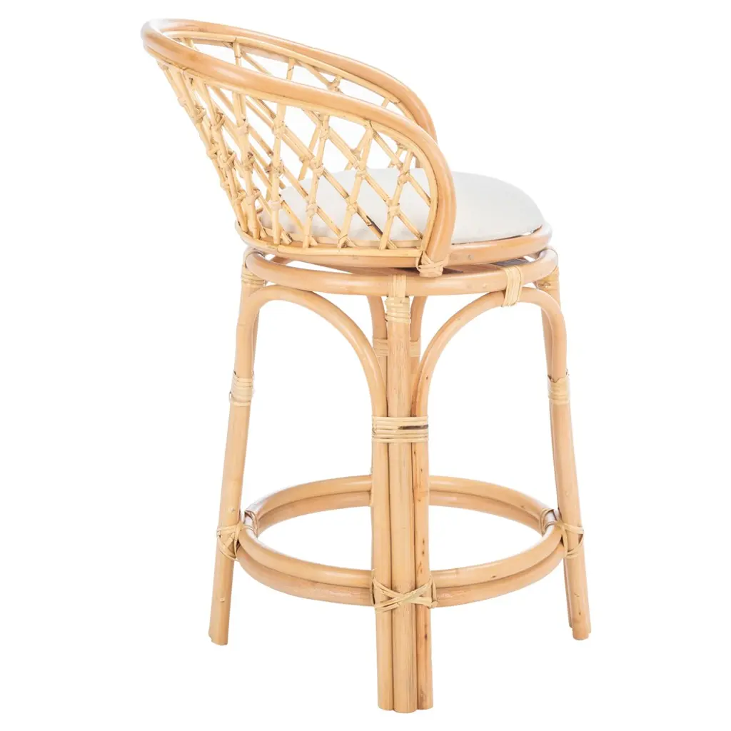 Yelena Coastal Beach Natural Mango Wood Woven Rattan Swivel Counter Stool
