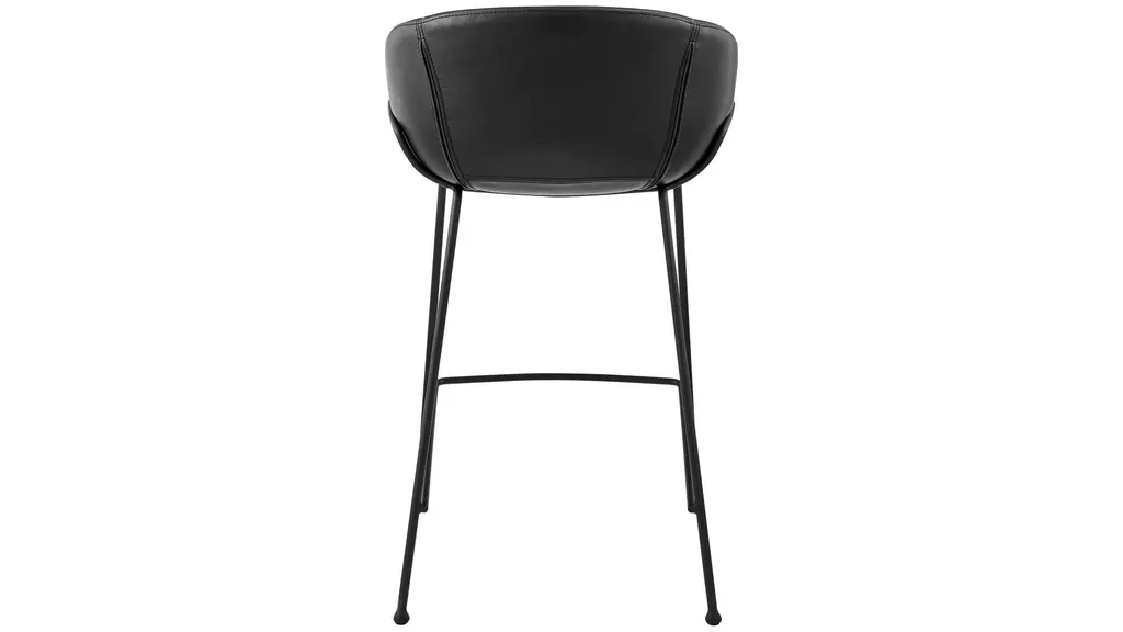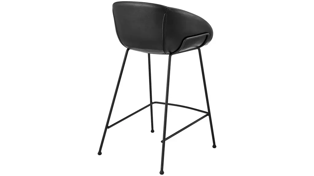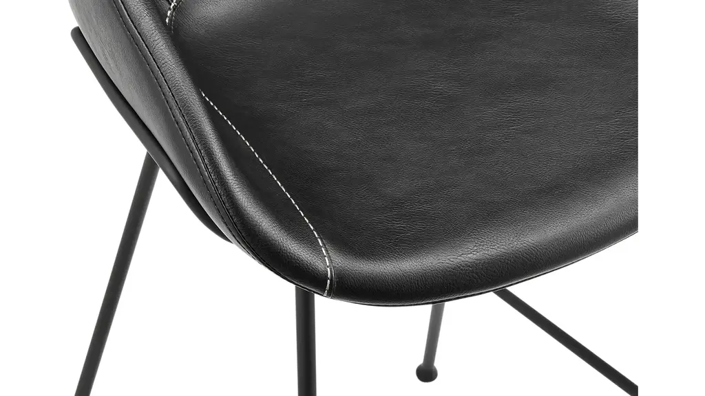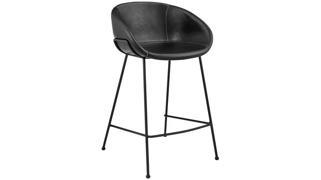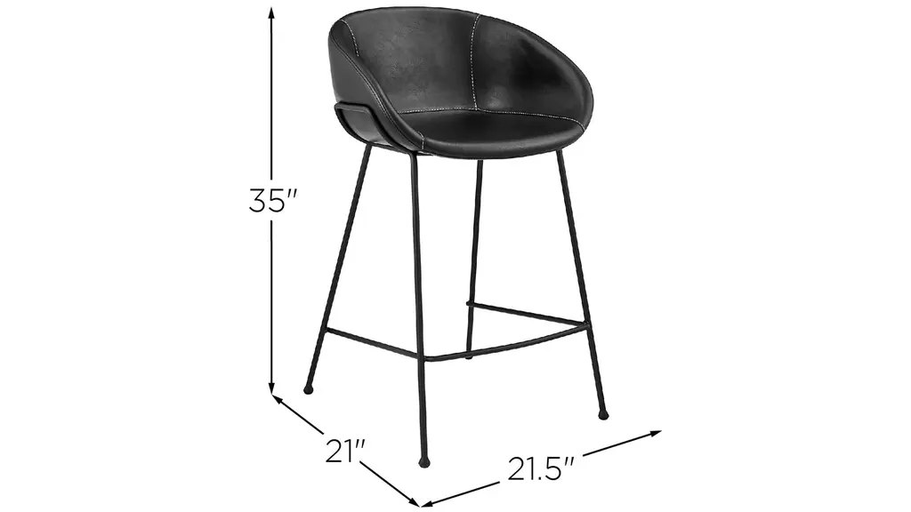 The Zach Counter Stool Set of 2 cradles you in vintage leatherette or fabric while matte black powder coated solid rod steel legs provide a sturdy support. Thicker stitching on the seat is stylish and durable, and the rounded feet are a delightful accent.