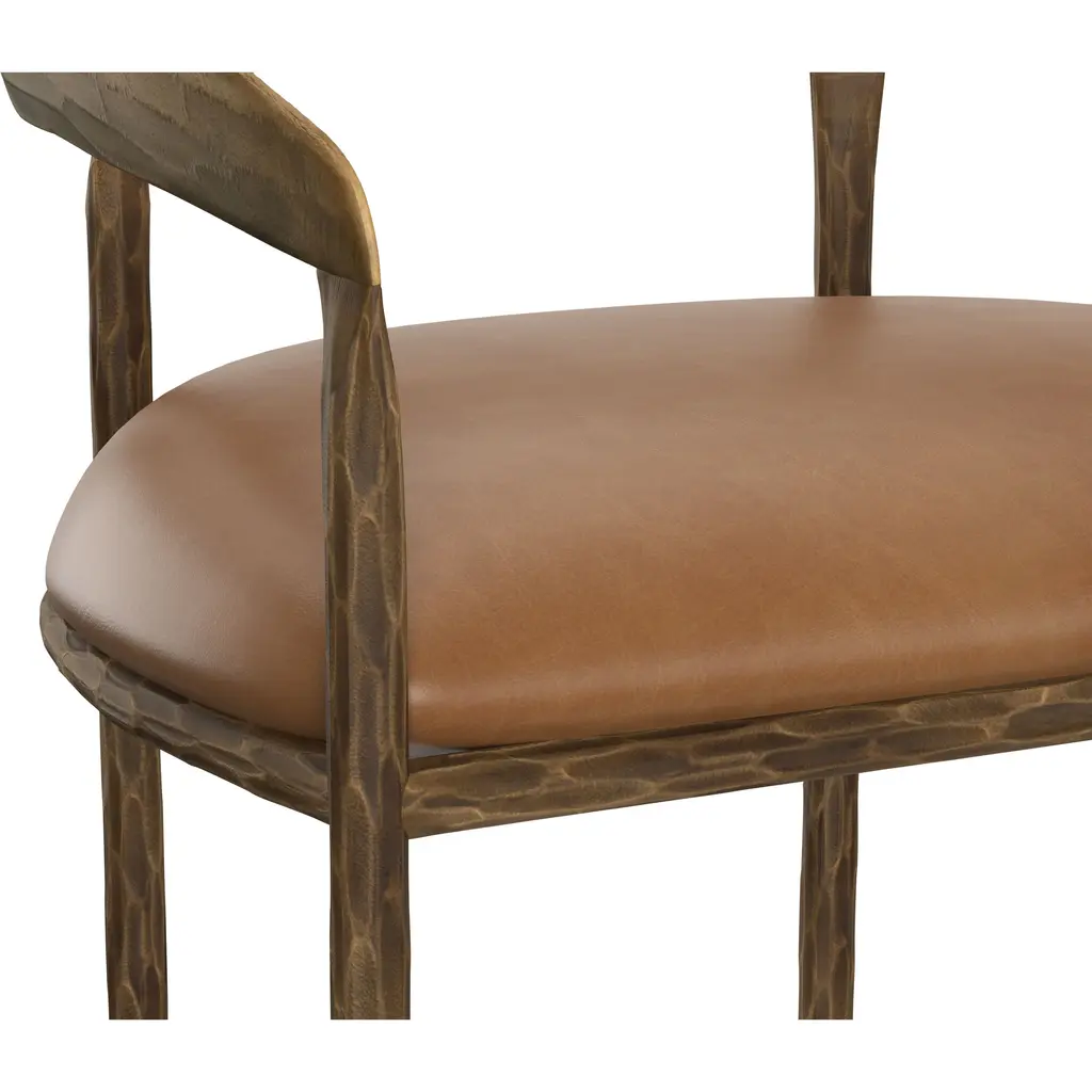 The Zanatta Counter Stool is all about the subtle details. The hammered metal detailing in the antique brass curved frame provides visual interest that will stand out in any dining space. A tan leather seat completes the look. Handle with Care: This design has been crafted with aniline leather. Leather is a natural material as such, colour variations, markings, wrinkles, grooves and light scratches are acceptable and appreciated characteristics. No two pieces are alike. Visit our Product Care page for more information on how to ensure the lasting beauty of this piece. Made in India. With refined craftsmanship, this design was brought to life by skilled local artisans. Due to the nature of handcraftsmanship, unique imperfections such as fissures, markings and variations in colour and shape are welcomed and appreciated characteristics for a truly one-of-a-kind piece.