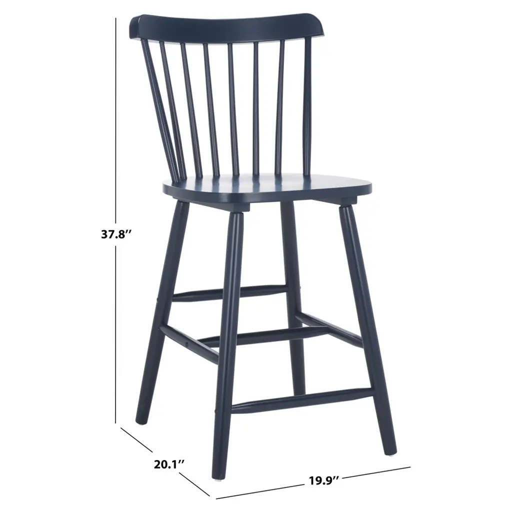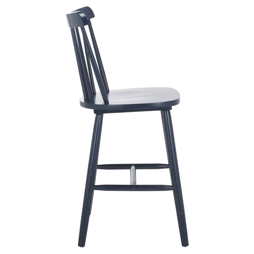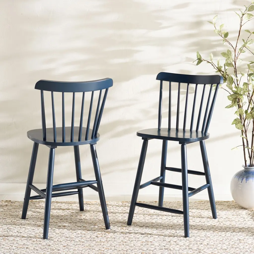 Zoey Updated Traditional Navy Blue Wood Windsor Counter Stool - Set Of 2