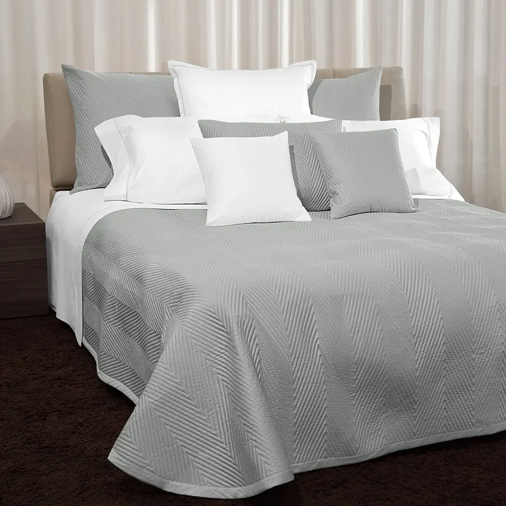 The Letizia Bedding Collection is made with an elegant herringbone quilting pattern, perfectly suited for contemporary bedrooms and guest rooms. The smooth sateen border on these coverlets and pillow shams gives character and refinement to this luxury bedding. Made with long staple cotton sateen and 80 gr/sqm polyester fill in Italy.