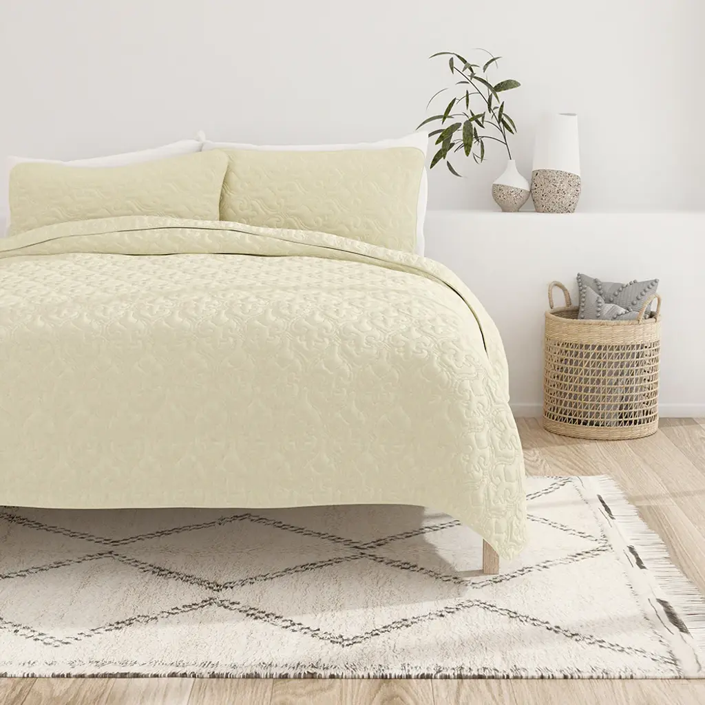 Give your room a comfy new addition with this ultra soft quilted coverlet set! Spun from our premium yarns, this set is twice as strong as cotton, wrinkle resistant and a perfect option for those with allergies or sensitive skin. Available in 3 quilted patterns and 6 gorgeous colors, each piece is double brushed for a super soft, cozy feel.