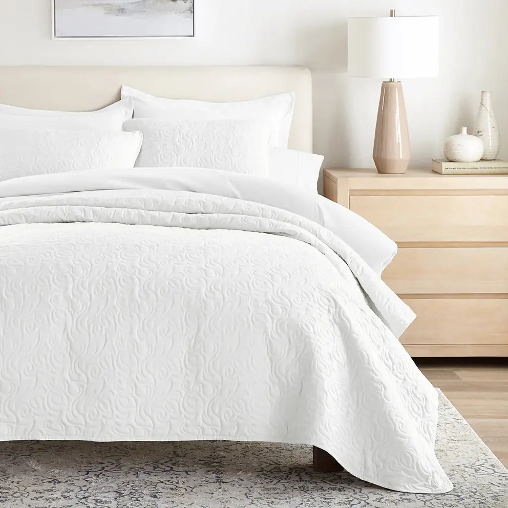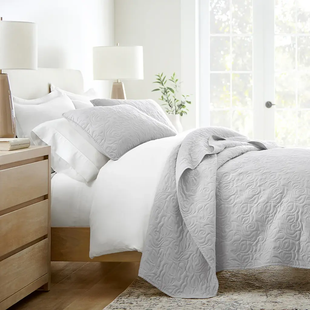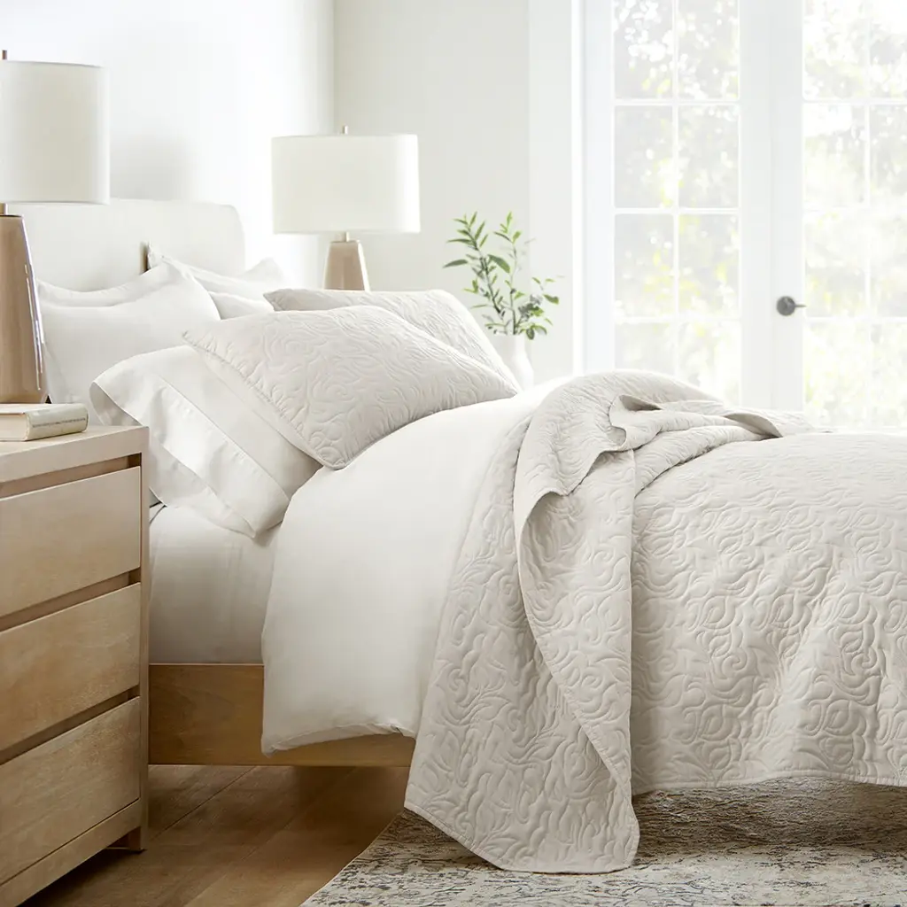 Give your room a comfy new addition with this ultra soft quilted coverlet set with shams! We've generously filled it with artificial down, and each piece is double brushed to give it that super soft, cozy feel. The beautiful, subtle quilted stitching adds dimension and a gorgeous touch to any bedroom. Spun from our premium yarns, this set is twice as strong as cotton, wrinkle resistant and a perfect option for those with allergies or sensitive skin. Available in 3 elegant stitched designs of striped, floral and diamond, elevating the look and feel of any bedroom. The sets are available in 6 gorgeous colors, it'll be hard to pick only one for your bed refresh!