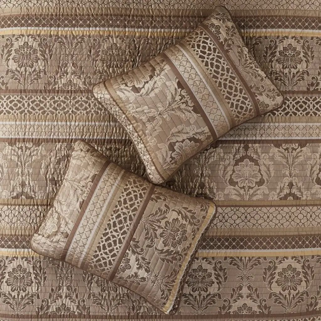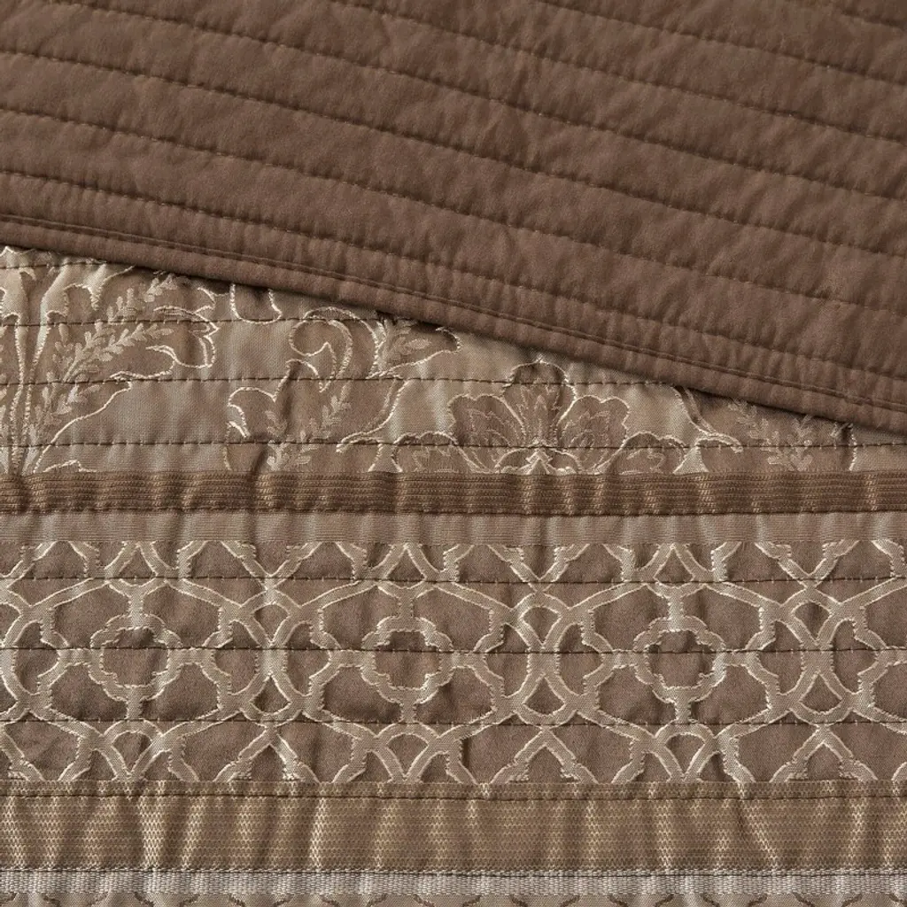 6Pc King Mirage Reversible Quilted Coverlet Set Brown/gold - Madison Park: Jacquard, Lightweight Fabric