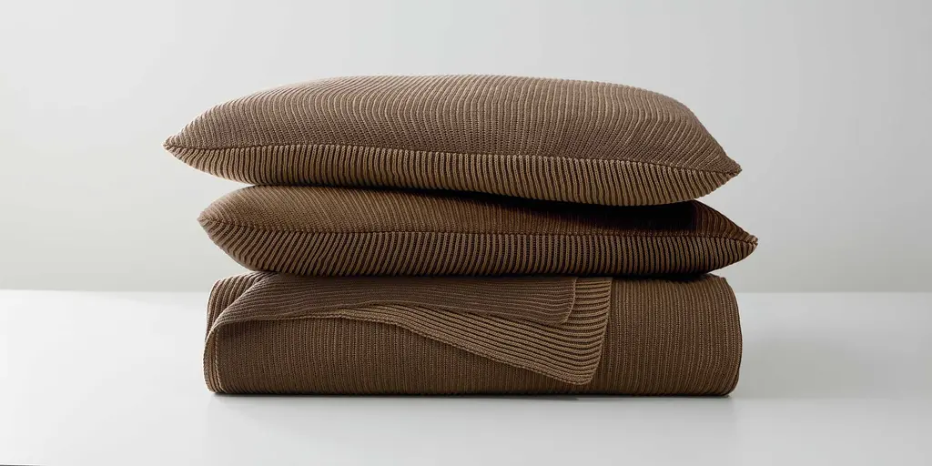 The Amory coverlet features a unique ribbed texture expertly knitted from soft cotton fibers, resulting in a two-tone colorway with a luxuriously supple feel.