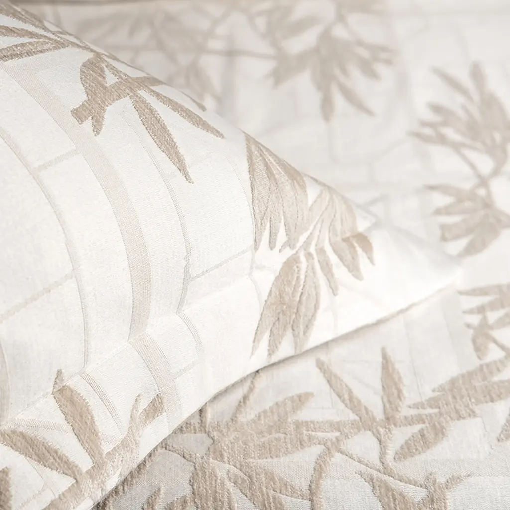 Elevate your sleep space with the Bamboo Coverlet Taupe by Kevin O’Brien Studio. Woven in a sumptuous cotton blend, this elegant coverlet features a chenille pattern hand-drawn by Kevin himself. A serene and ultra-soft addition to any bedroom. Crafted in Turkey. Pair with the Bamboo Euro Sham Taupe.
