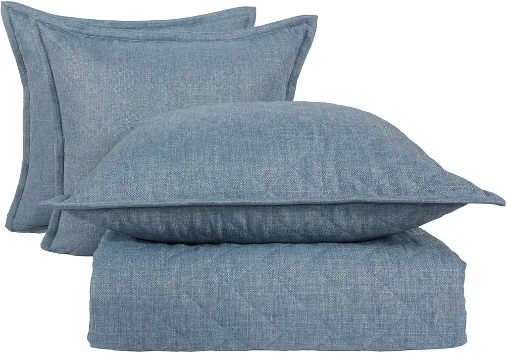Add a subtle pop of color to your personal retreat with our Stonewash coverlet ensemble. This beautiful textured blue ensemble pairs perfectly with neutrals and whites for a complete master bedroom set. The king ensemble includes one coverlet and three euro shams, while the queen ensemble includes one coverlet and two euro shams. Fabric content: 100% polyester Care instructions: wash or dry clean.