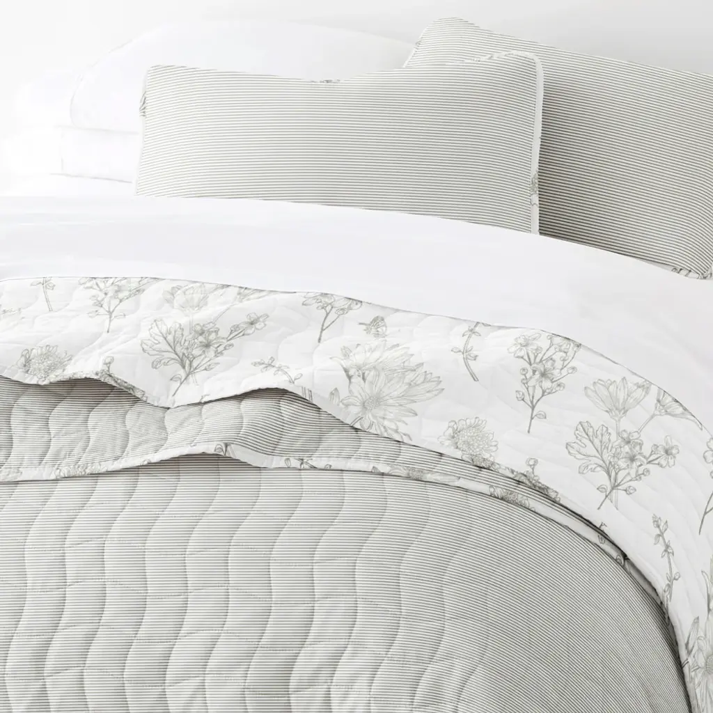 Give your room a comfy new addition with this super soft reversible microfiber quilt and sham set. We've generously filled it with artificial down, and each piece is double brushed to give it that super soft, cozy feel.