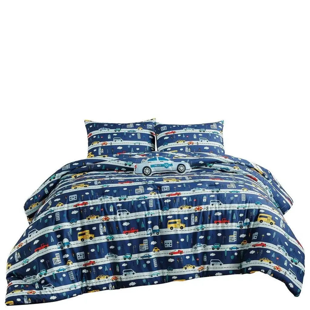 Blue Cars Reversible Kids Quilt Coverlet Bedspread Bedding Set - Full - Queen