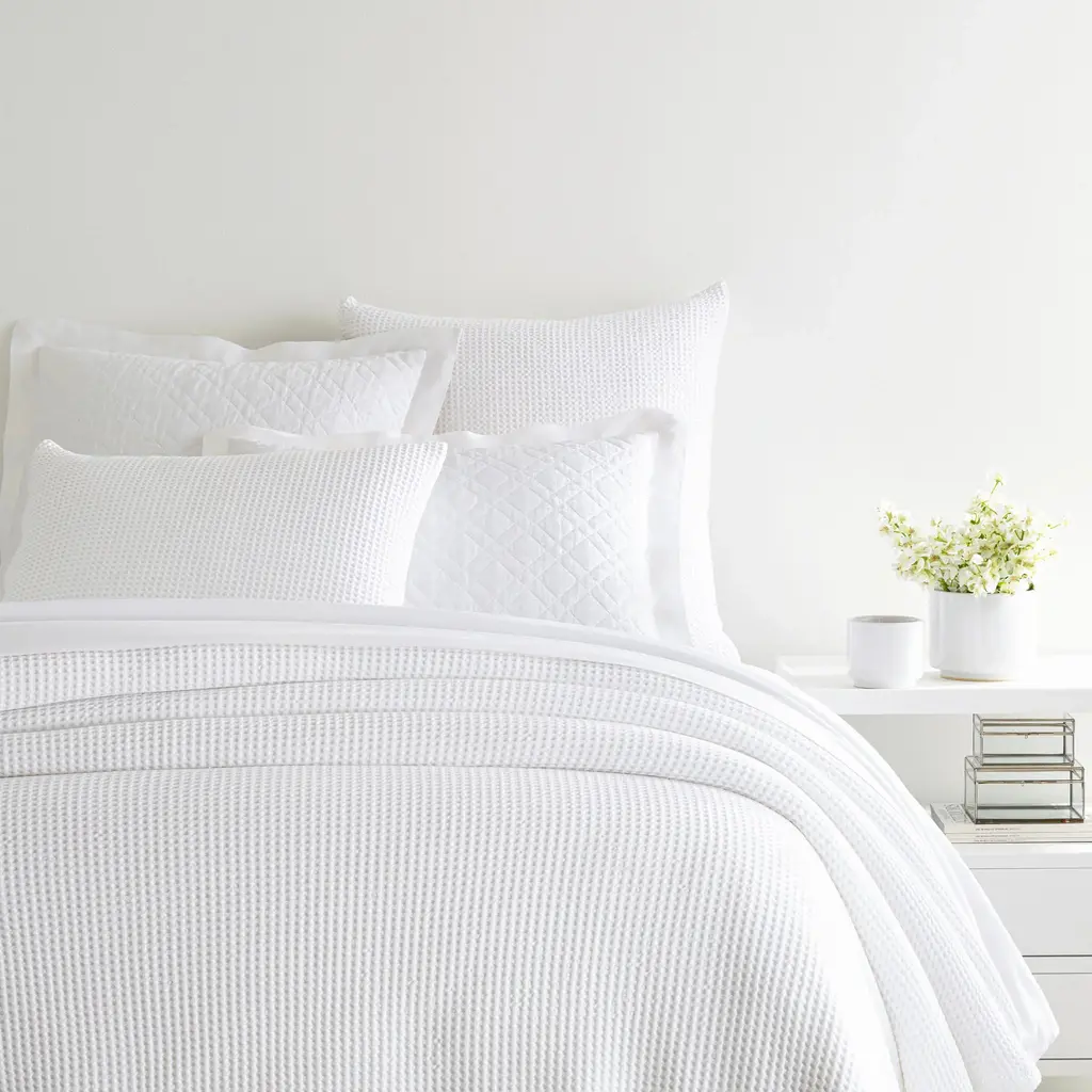 Dress your bed with our refreshed and updated cotton matelassé waffle weave for a frothy, soft look, texture and handfeel. Expertly woven in Portugal by weavers renowned for their artistry and expertise, generously sized and tailored, then stonewashed and tumbled to buttery soft laundered comfort.