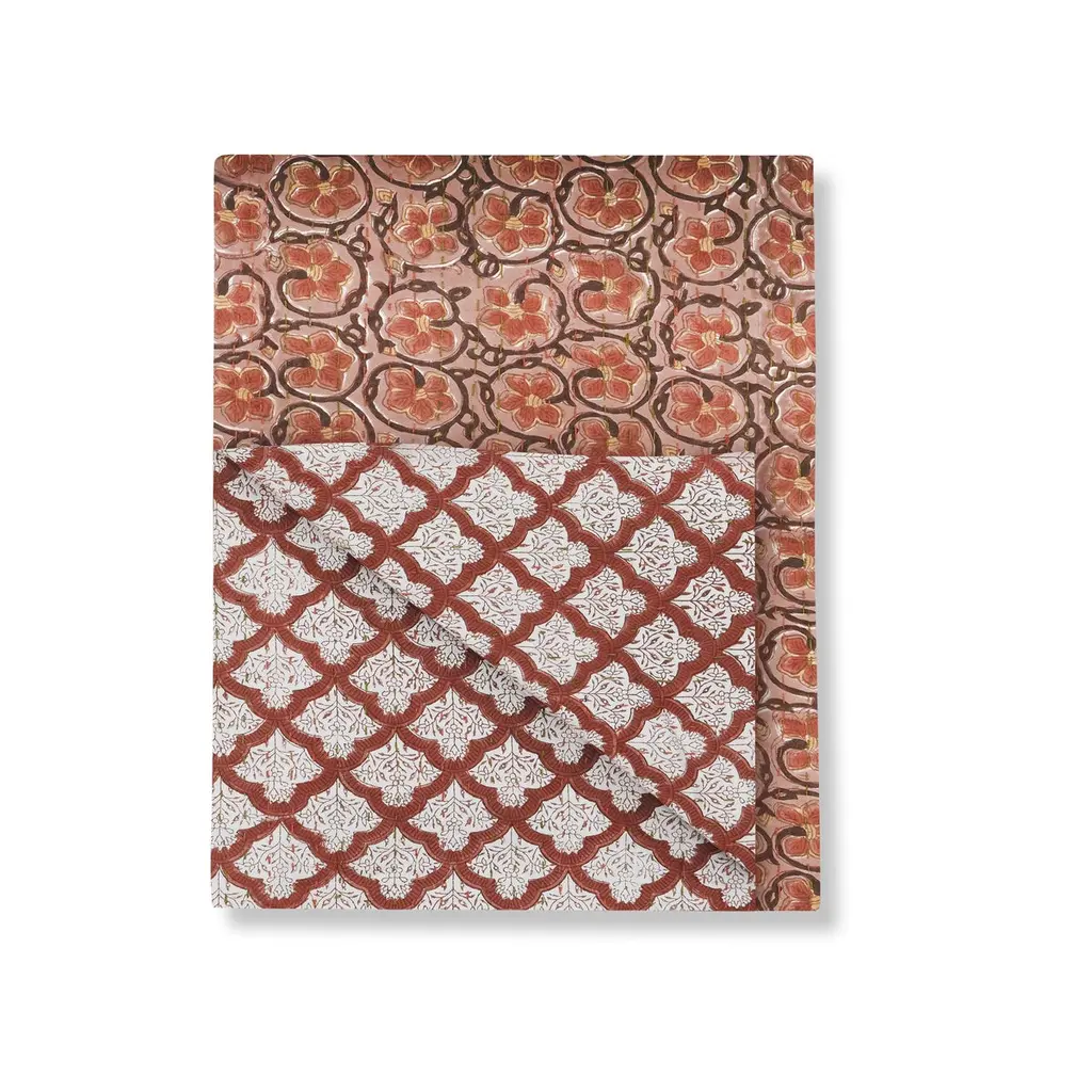 Soft, hand blocked reversible throw with stitching, made with 100% cotton. Reversible.Queen Bed Coverlet: 88" x 92"Care instructions: Dry clean, or machine wash on cold with like colors, line dry, and use medium/warm iron.