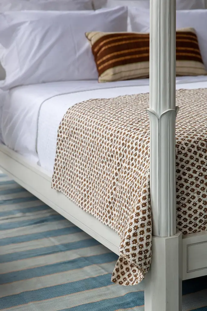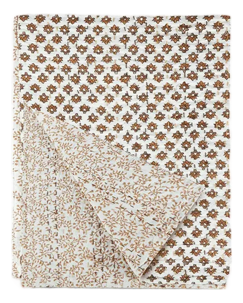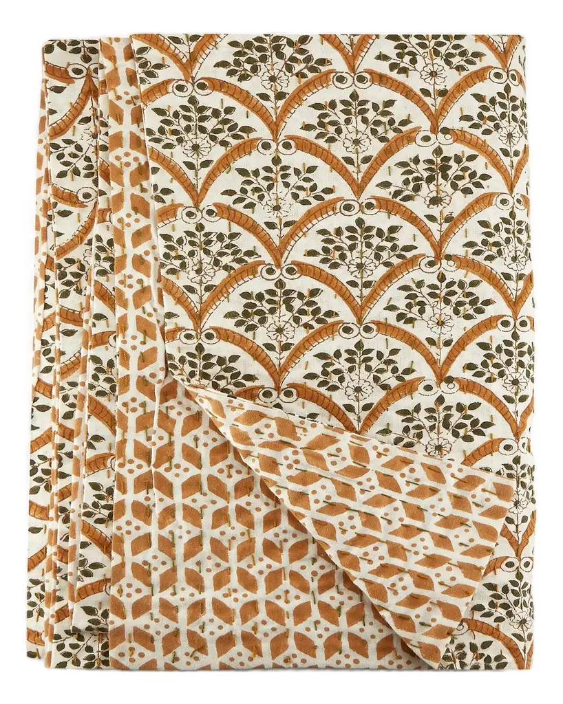 A soft, hand blocked reversible throw in our best-selling Wild Ginger pattern, with a charming vine pattern on its opposite side, with coordinating stitching. Reversible. Available in three sizes:Sofa Throw 50” x 60”Queen Bed Coverlet: 88" x 92"King Bed Coverlet: 92" x 108"Care instructions: Dry clean, or machine wash on cold with like colors, line dry, and use medium/warm iron.