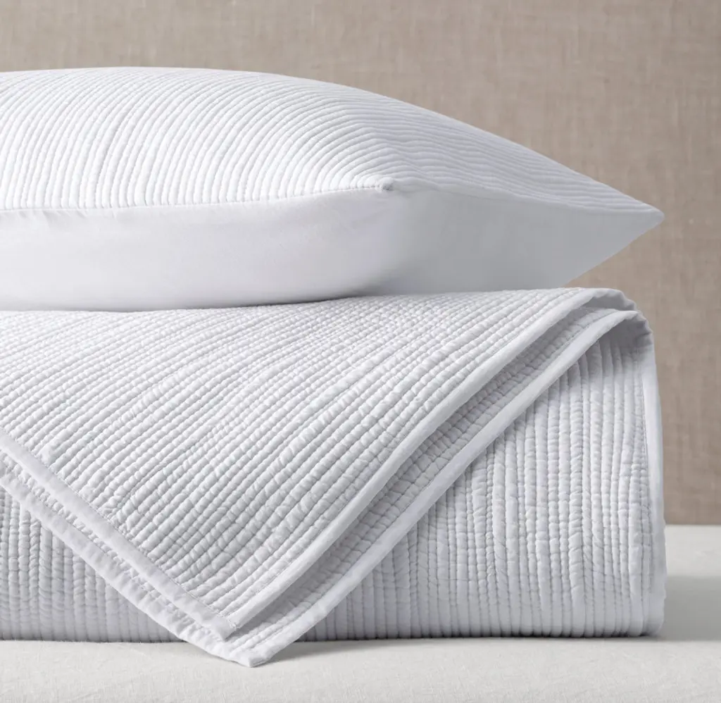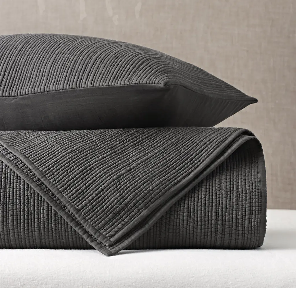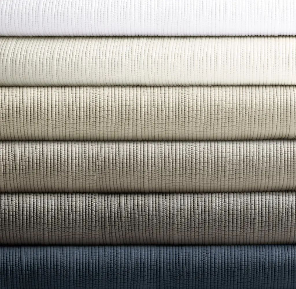 FREE SHIPPING Our airy cotton voile bedding is free-form quilted with narrow rows of channel stitching. Each row is slightly different than the next, enhancing the quilt's plush, natural texture.