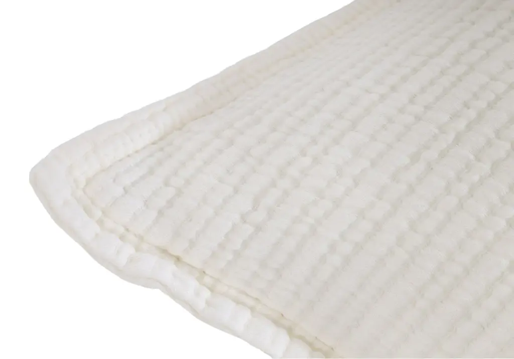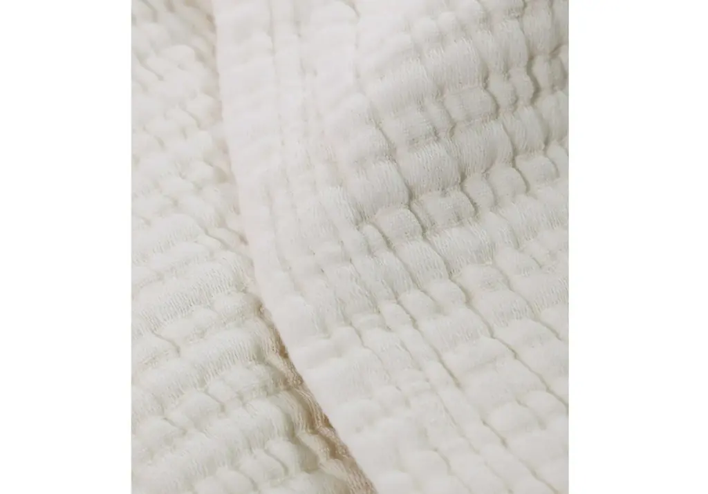 A tailored addition, this cream coverlet features a soft linear ribbed pattern with a flange edge. Crafted from 100% cotton and in Portugal, it easily gives soft elegance, pairing well with the matching pillows or other throw pillows.