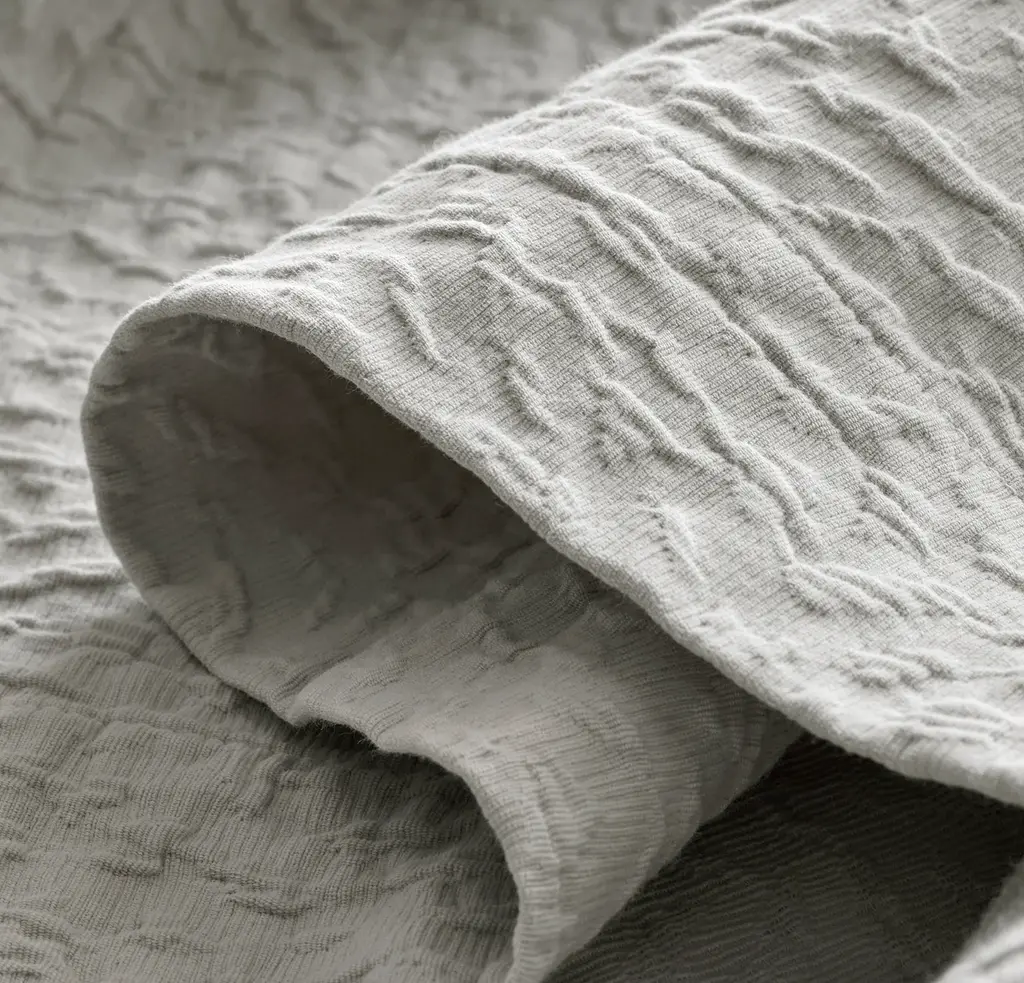 Drape your bed in extraordinary softness and sophistication with this refined statement piece. It's made with textured 100% organic cotton by artisans in Portugal, and the intricate matelassé weave emulates the beauty of dappled light that shines through your bedroom. Inspired by European minimalism, this abstract coverlet is crafted to surround your pillows in designs tailored for two distinct aesthetics—the Classic length, made to tuck elegantly into your bed, and a new Grand length, which grazes the floor in a luxurious sweep of texture. The Feel Subtly textured with a fluid, lived-in softness The Look Effortlessly sophisticated