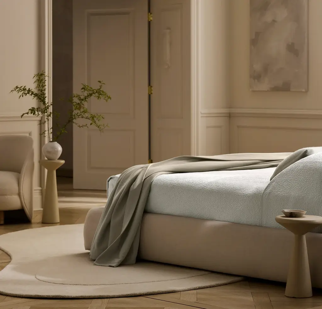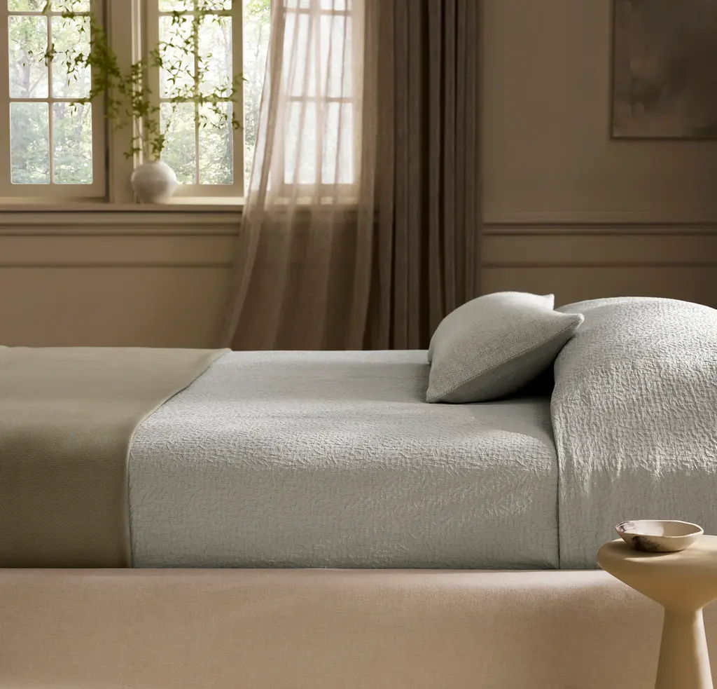 Drape your bed in extraordinary softness and sophistication with this refined statement piece. It's made with textured 100% organic cotton by artisans in Portugal, and the intricate matelassé weave emulates the beauty of dappled light that shines through your bedroom. Inspired by European minimalism, this abstract coverlet is crafted to surround your pillows in designs tailored for two distinct aesthetics—the Classic length, made to tuck elegantly into your bed, and a new Grand length, which grazes the floor in a luxurious sweep of texture. The Feel Subtly textured with a fluid, lived-in softness The Look Effortlessly sophisticated