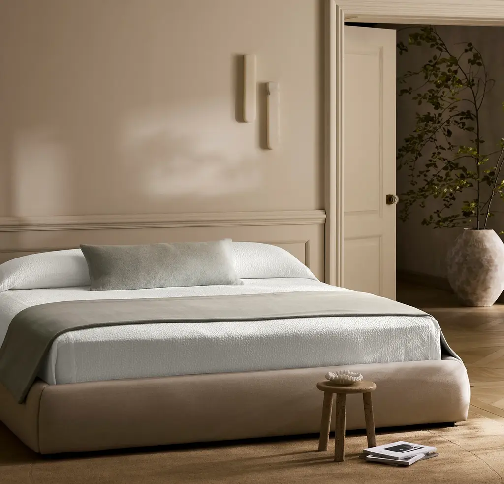 Drape your bed in extraordinary softness and sophistication with this refined statement piece. It's made with textured 100% organic cotton by artisans in Portugal, and the intricate matelassé weave emulates the beauty of dappled light that shines through your bedroom. Inspired by European minimalism, this abstract coverlet is crafted to surround your pillows in designs tailored for two distinct aesthetics—the Classic length, made to tuck elegantly into your bed, and a new Grand length, which grazes the floor in a luxurious sweep of texture. The Feel Subtly textured with a fluid, lived-in softness The Look Effortlessly sophisticated