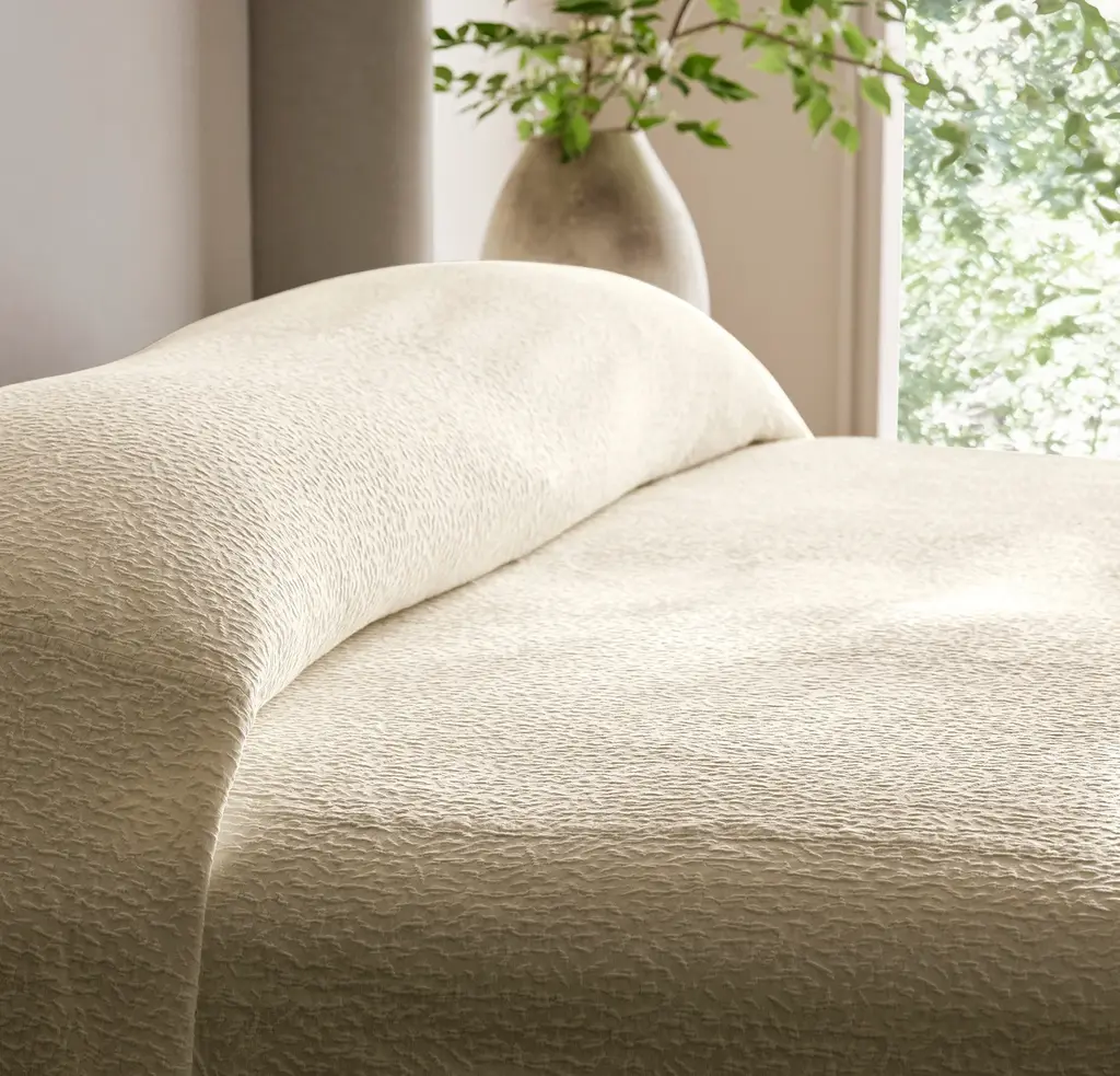 Drape your bed in extraordinary softness and sophistication with this refined statement piece. It's made with textured 100% organic cotton by artisans in Portugal, and the intricate matelassé weave emulates the beauty of dappled light that shines through your bedroom. Inspired by European minimalism, this abstract coverlet is crafted to surround your pillows in designs tailored for two distinct aesthetics—the Classic length, made to tuck elegantly into your bed, and a new Grand length, which grazes the floor in a luxurious sweep of texture. The Feel Subtly textured with a fluid, lived-in softness The Look Effortlessly sophisticated