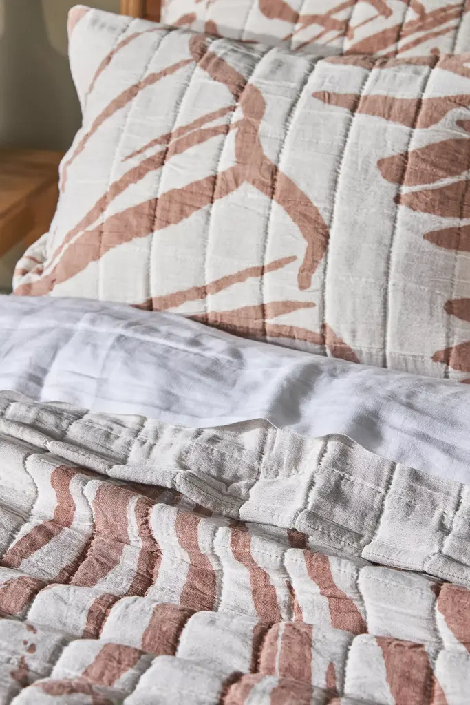 The airy fabrication and soothing, neutral print of the Declan brings a taste of the outdoors in. A coverlet is the perfect go-between for your duvet cover and sheets - it can be used as a single layer by warm sleepers, or as an extra layer of coziness for chillier months. Looking for the sweetest of dreams? Read our guide to find the perfect bedding for you, and learn how to care for it season after season.