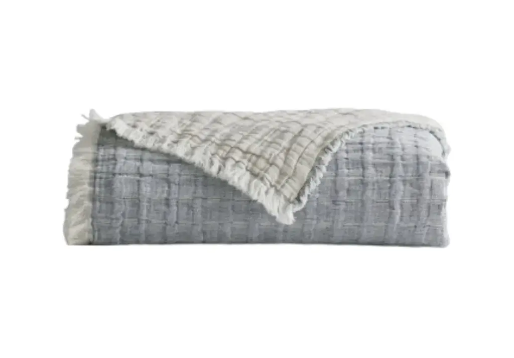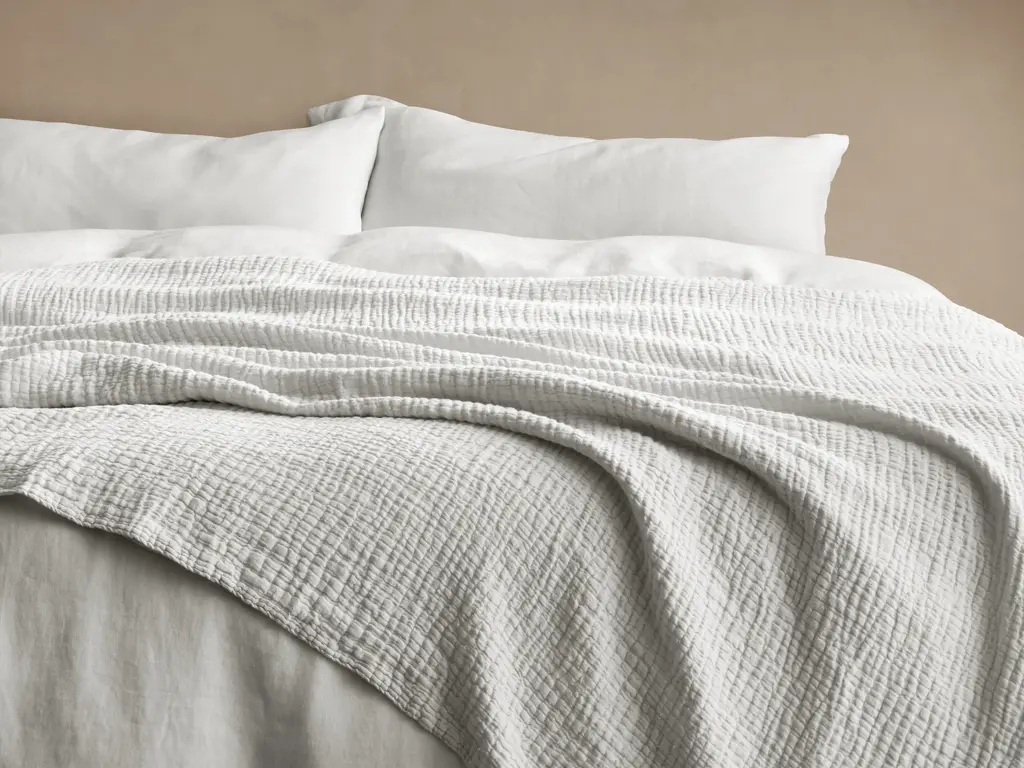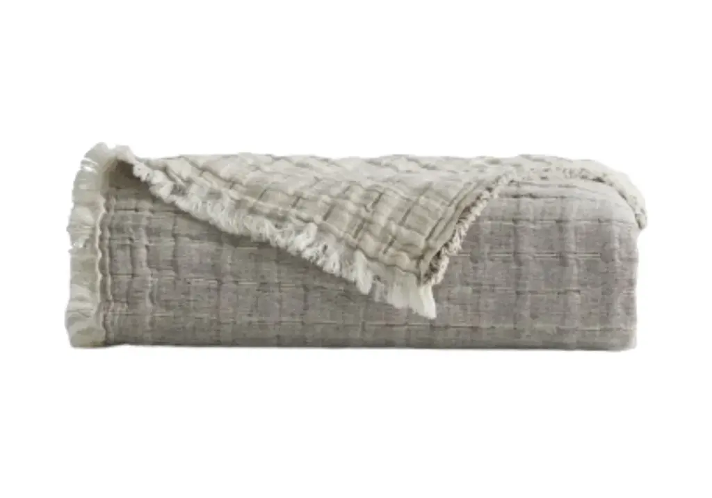 The Devon Coverlet brings a beautiful softness with its cotton linen blend crafted in Portugal. An eyelash fringe adorns each edge, giving a textured touch. Available in three colors, pair with any bedding for a layered look.