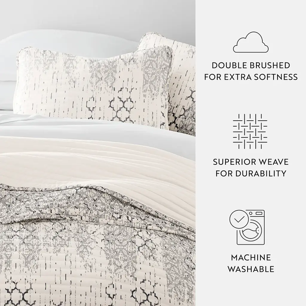 Give your room a comfy new addition with this super soft reversible microfiber quilt and sham set. We've generously filled it with artificial down, and each piece is double brushed to give it that super soft, cozy feel. The beautiful, subtle quilted stitchings add dimension and a gorgeous touch to any bedroom. Spun from our premium yarns, this set is twice as strong as cotton, wrinkle resistant and a perfect option for those with allergies or sensitive skin. The reversibility gives each side its own unique look. Available in a variety of beautiful designer patterns, making it easy to refresh any bedroom.