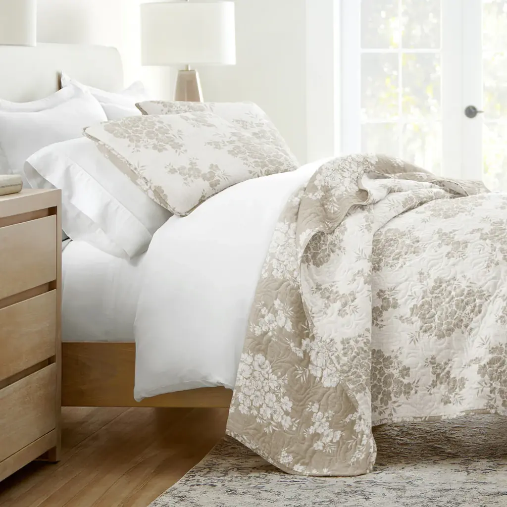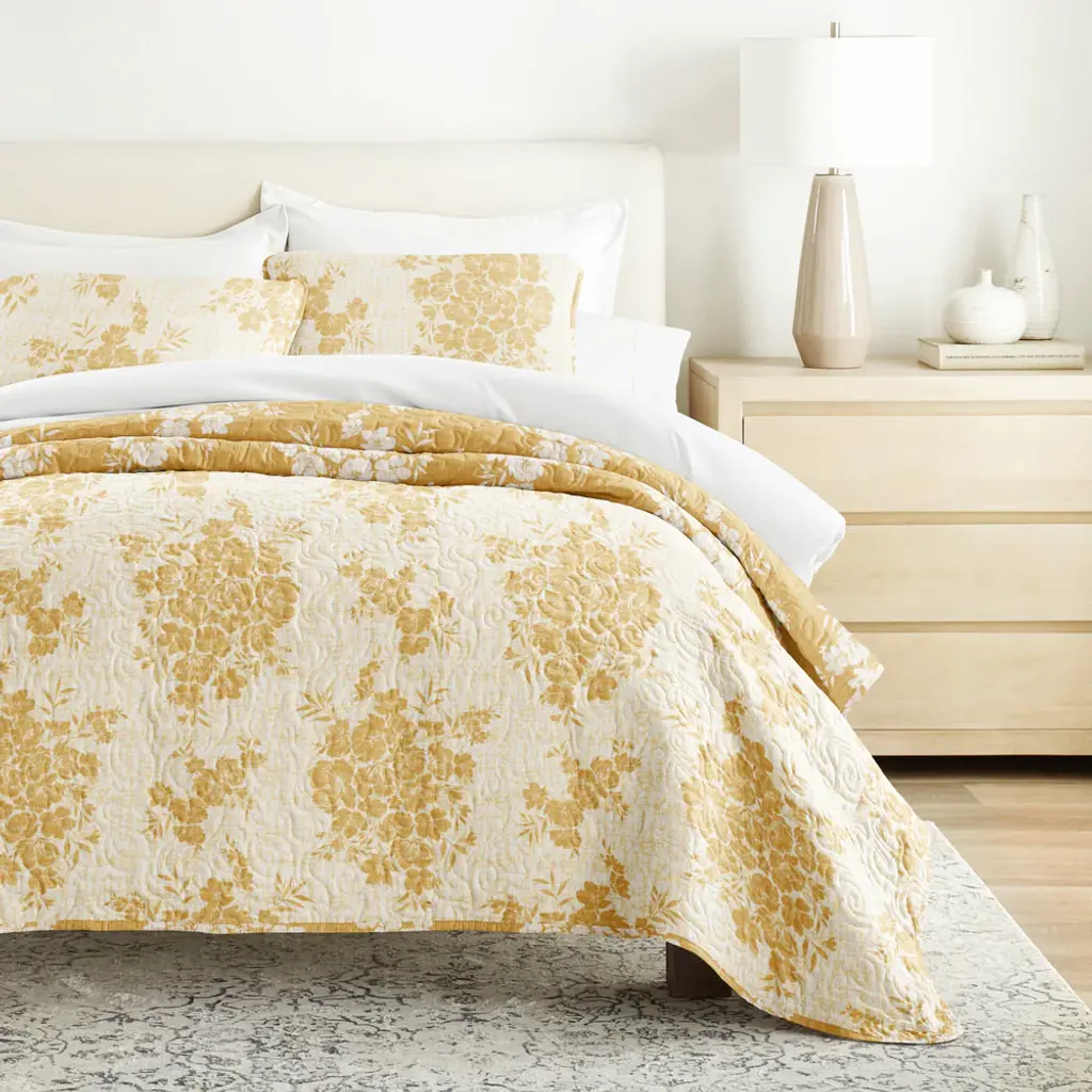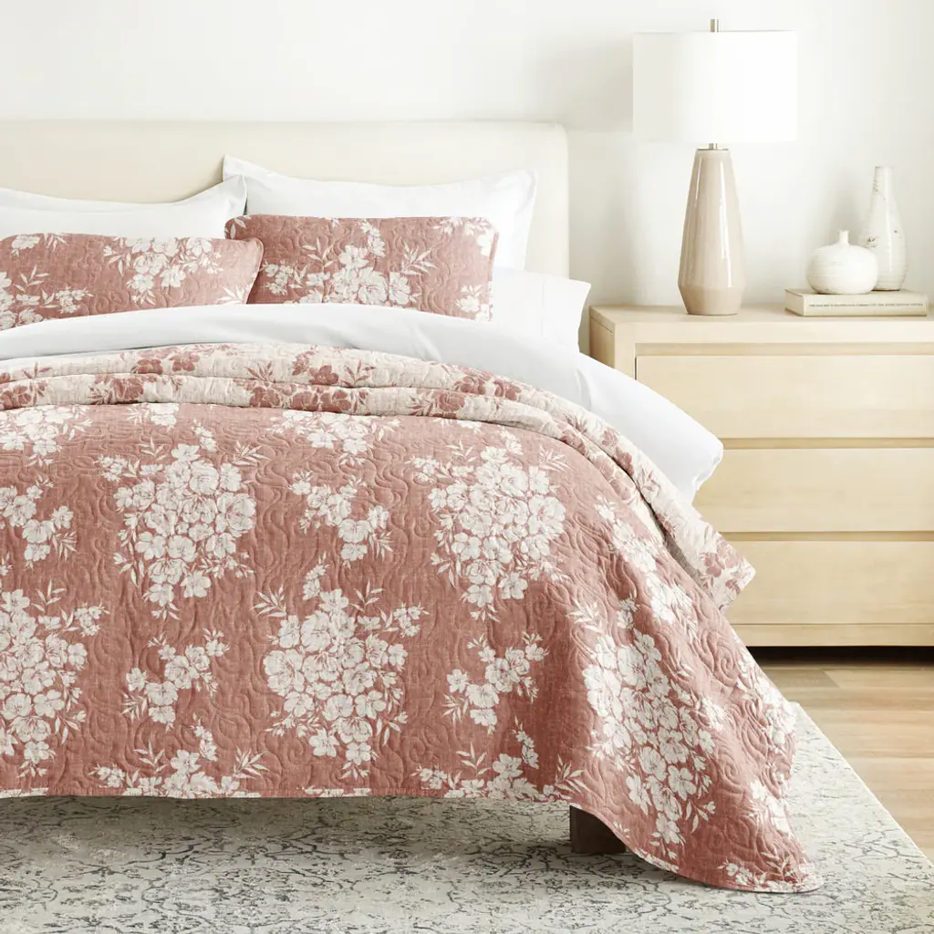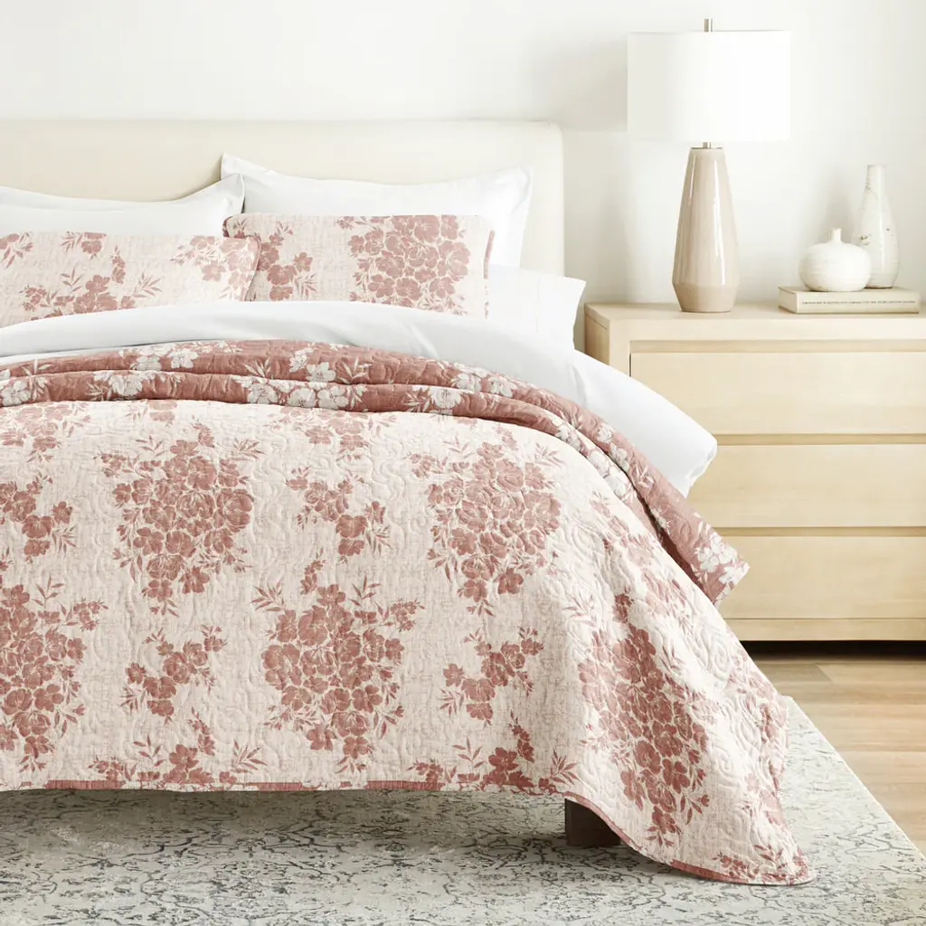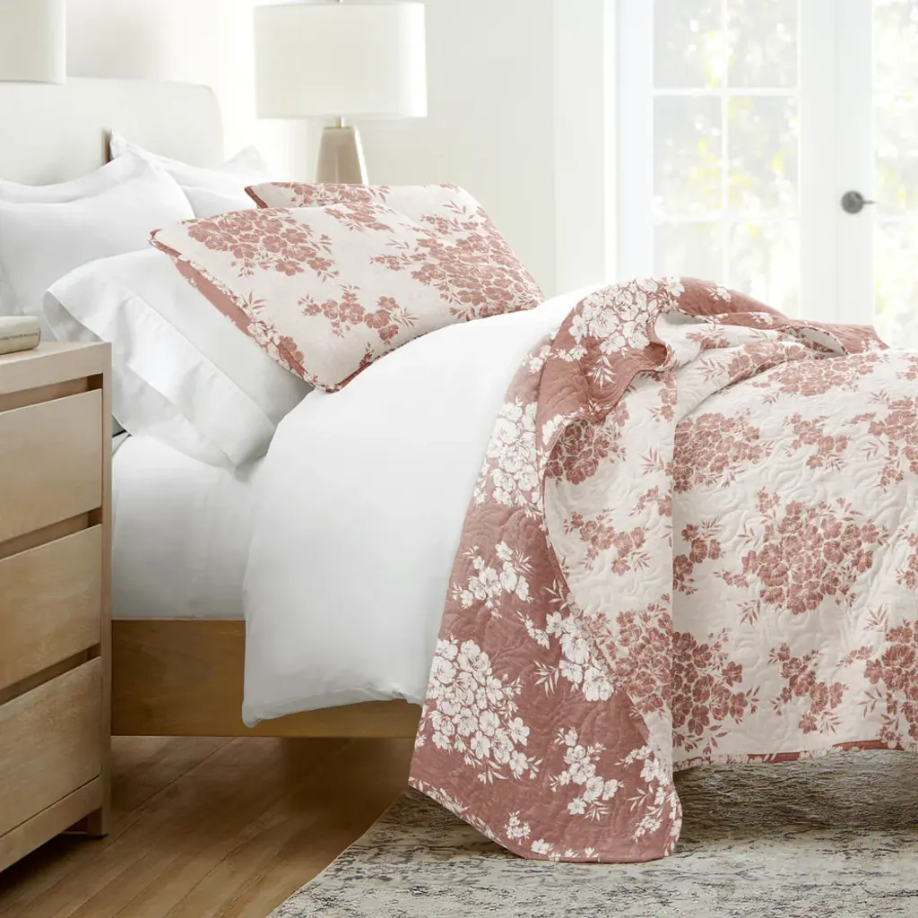 Distressed Bouquet Reversible Quilted Coverlet Set