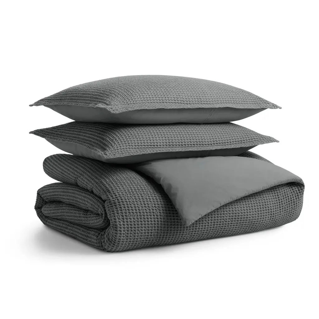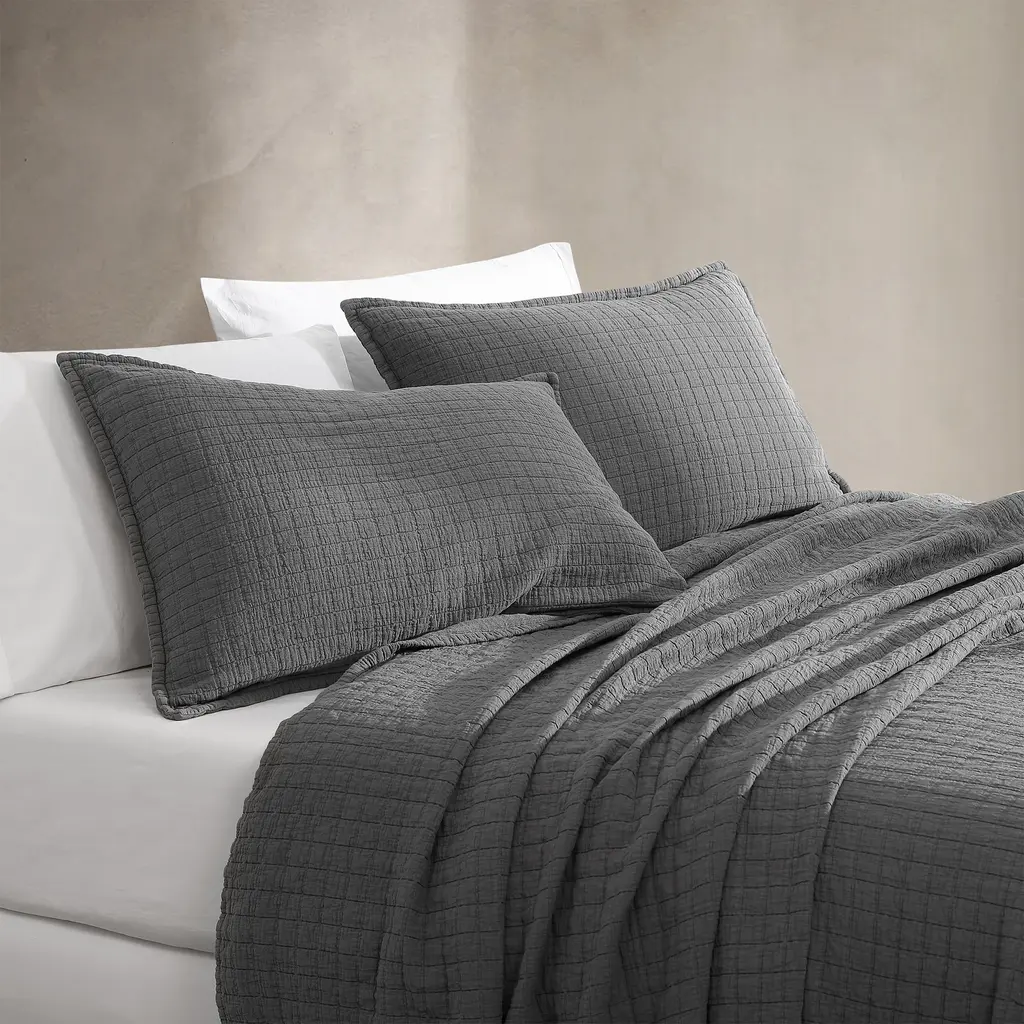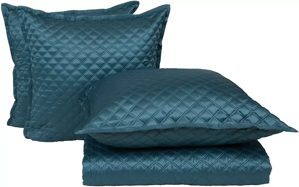 Top off your bed with the luxurious, satin-like shine of our Double Diamond coverlet ensemble. With your choice of calming hues, this set can complement the current aesthetic of your master or guest room perfectly. The king 4-piece ensemble includes one coverlet and three 26x26 euro shams, while the queen set includes a coverlet and two shams. 100% polyester. Machine wash or dry clean.