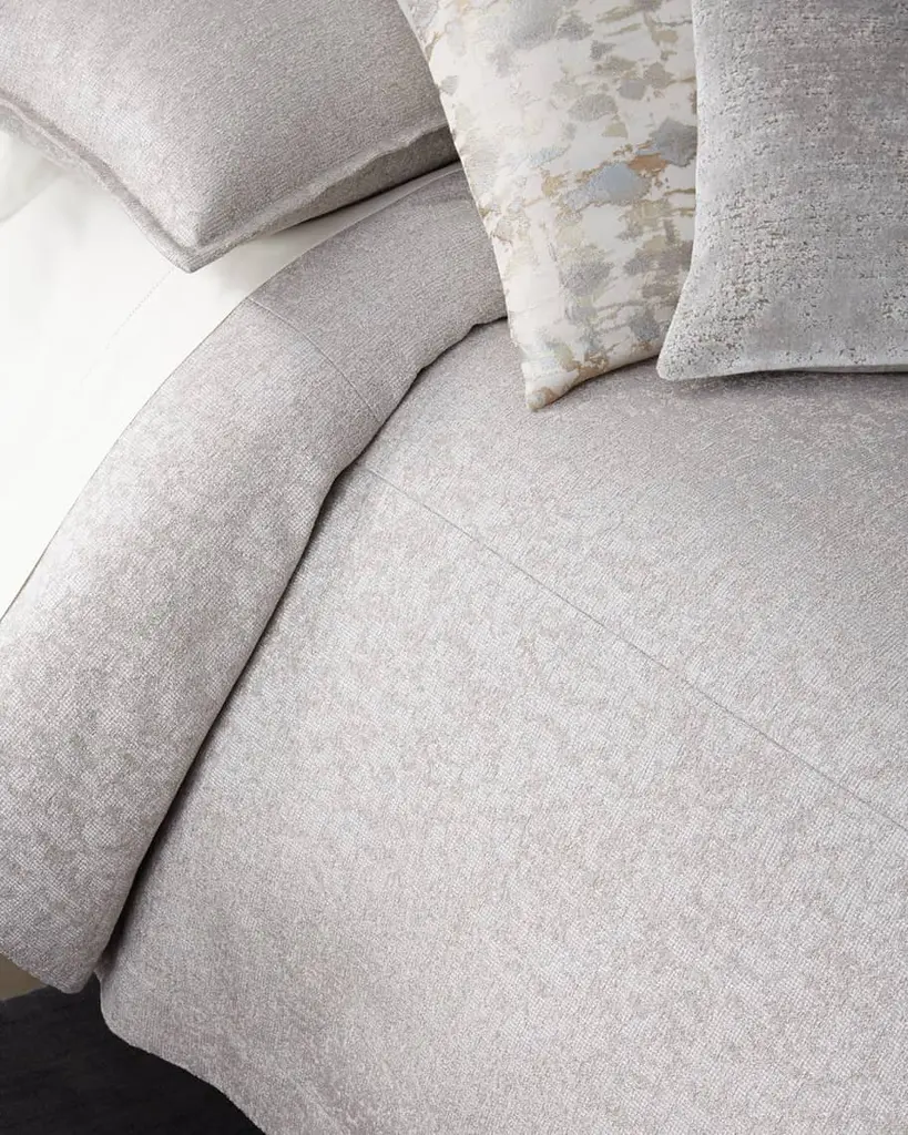 Metallic jacquard coverlet. Polyester; machine wash. 90" x 94". Made in the USA of imported materials. undefined