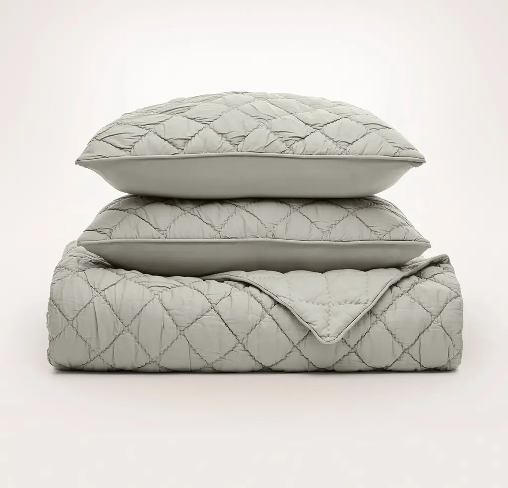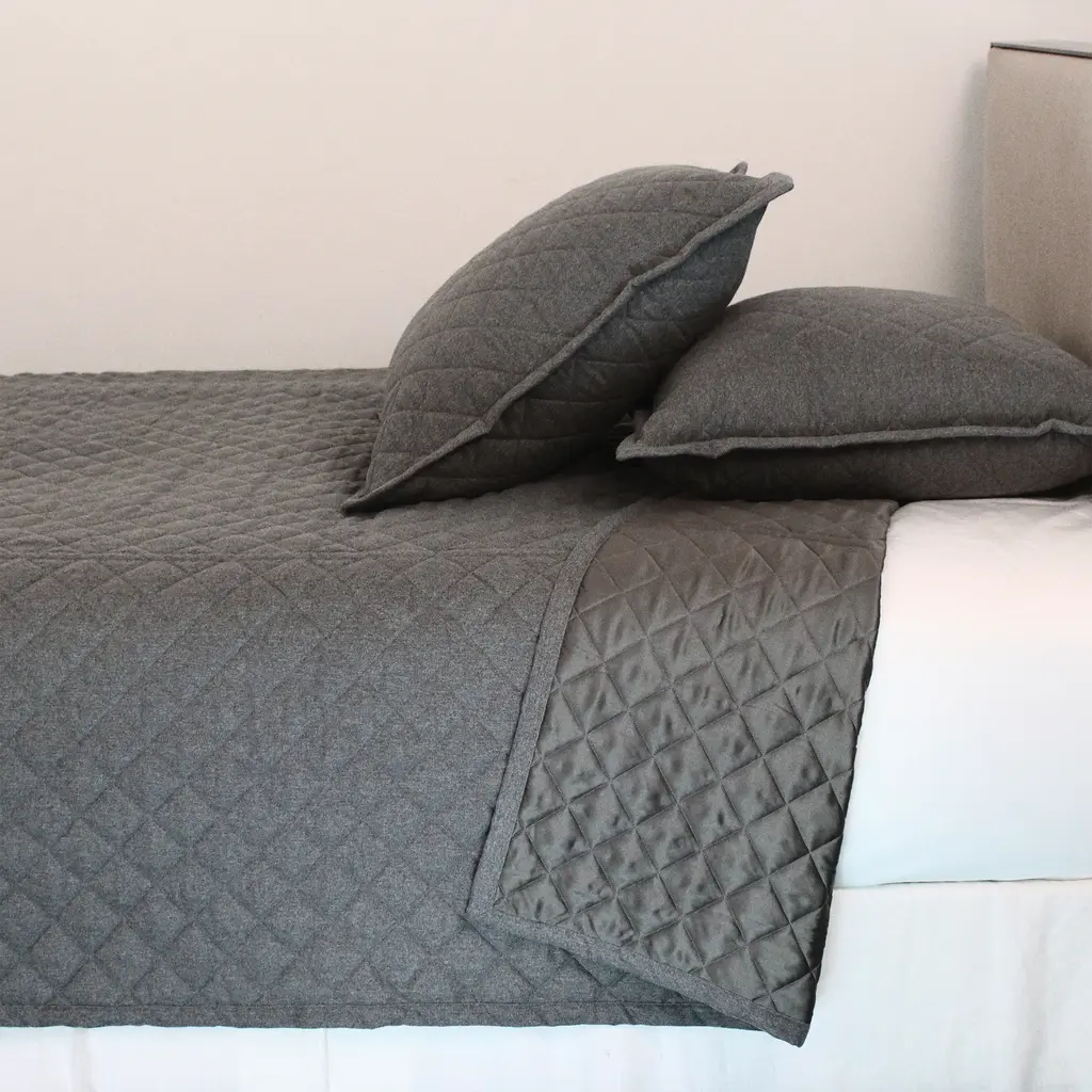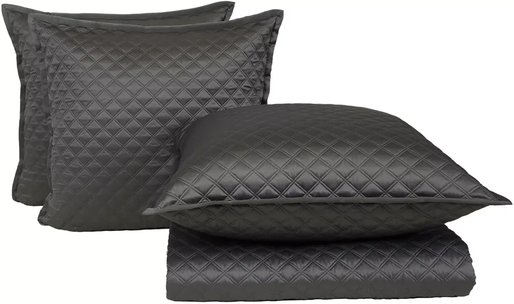 Our Flannel coverlet ensemble is casual, cool and trendy. Soft grey fabric offers a versatile look that will work well in your modern bedroom. The queen set includes one coverlet and two euro shams while the king set includes one coverlet and three euro shams. Crafted with 100% polyester. Care instructions: machine wash only.