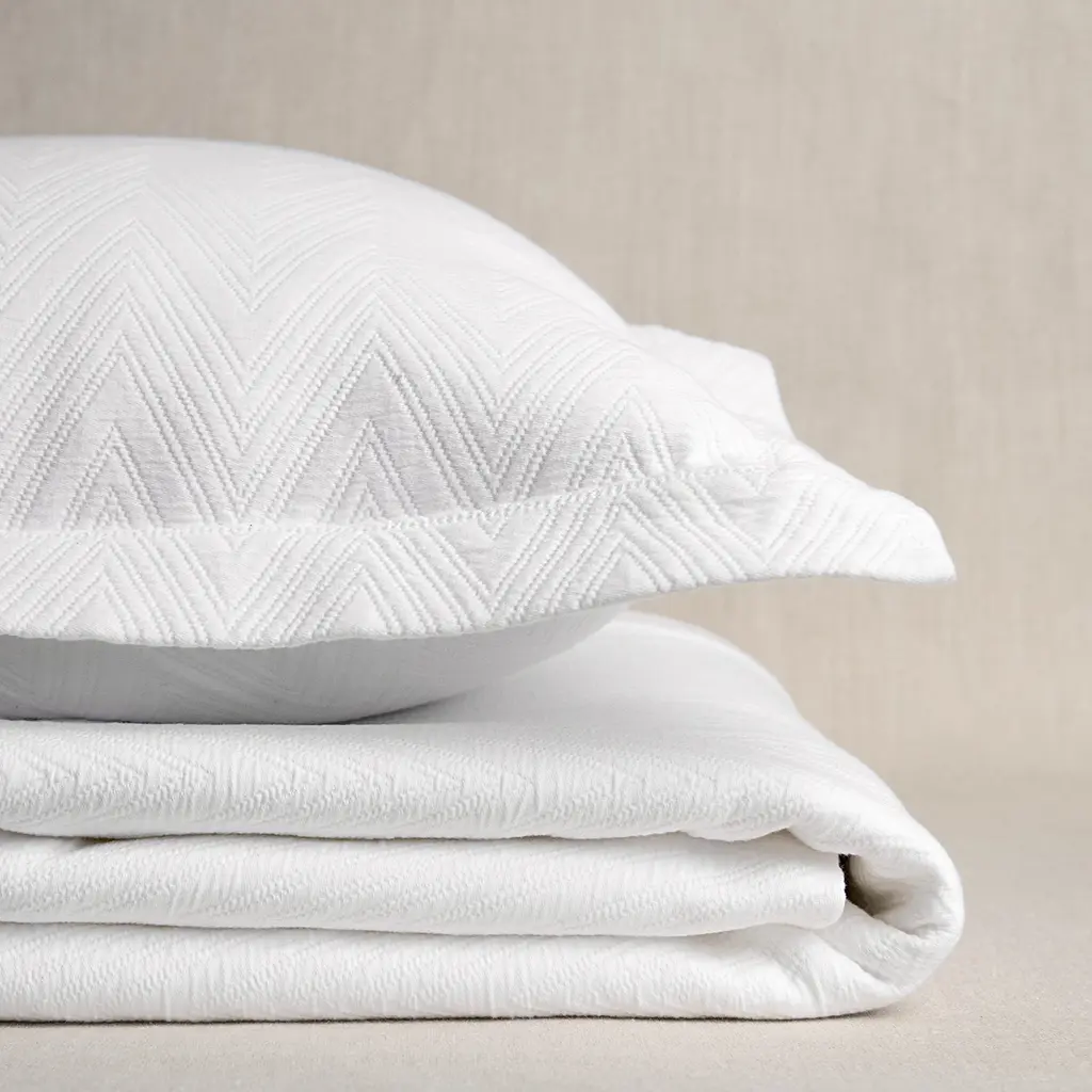 Discover the Frisco Coverlet White by Kevin O’Brien Studio. Woven in soft BCI cotton with eyelet detailing, this elegant coverlet features a refined chevron pattern that effortlessly complements any bedroom décor. A timeless addition to traditional and contemporary spaces. Crafted in Portugal. Pair with the Frisco Euro Sham White.