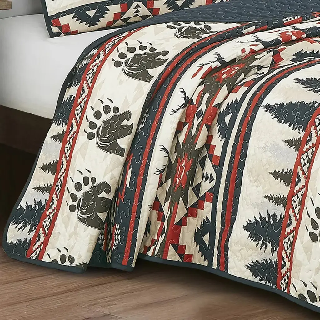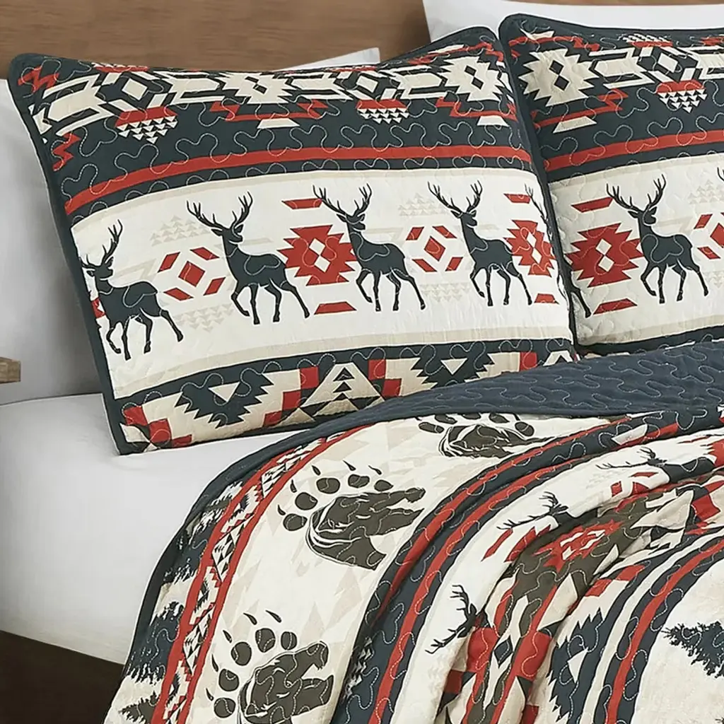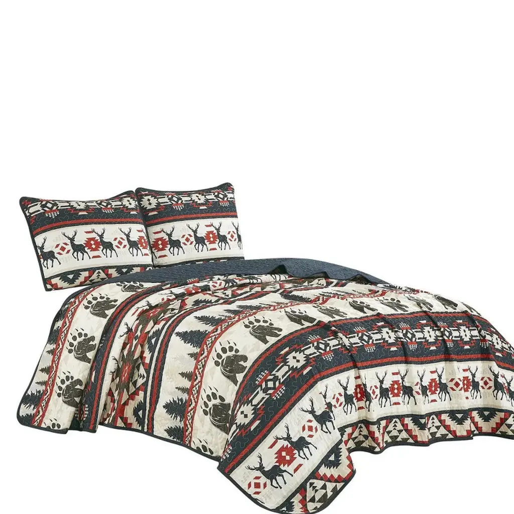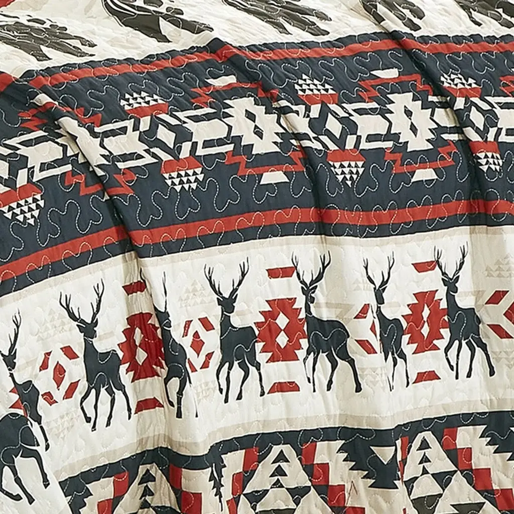 Home Mart Goods 3 Piece Blue Red & Cream Animal Print Quilt Coverlet Bedspread Bedding Set