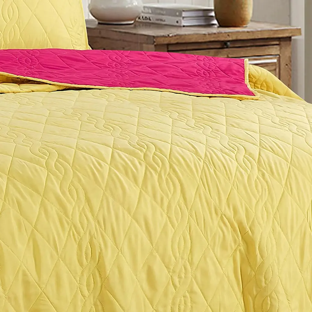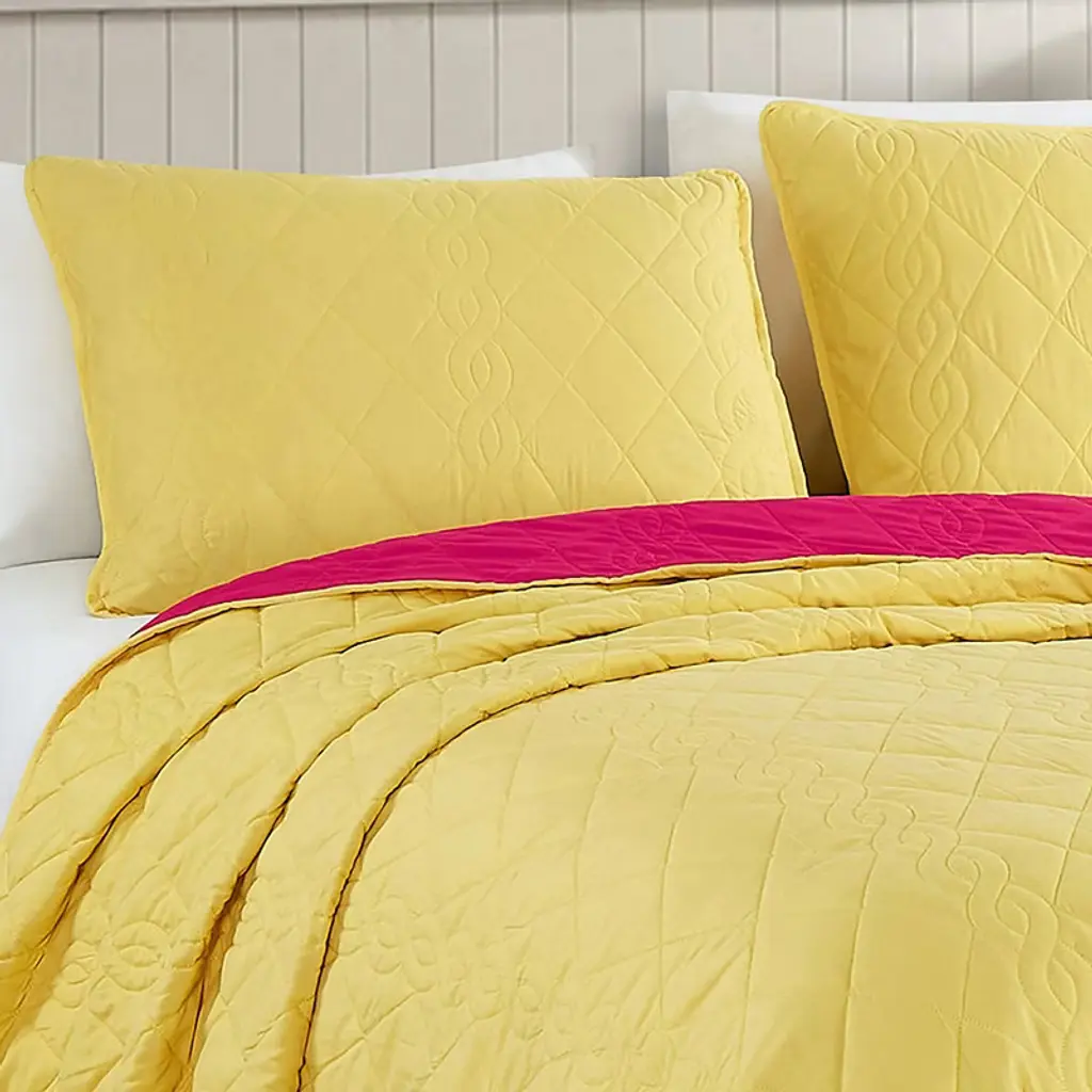 Home Mart Goods 3 Piece Yellow & Pink Geometric Reversible Quilt Coverlet Bedspread Bedding Set