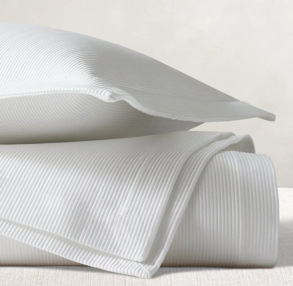 FREE SHIPPING Exquisitely refined yet invitingly soft, our bedding is crafted in the Florentine studio of textile master Carlo Bertelli. Tailored of premium long-staple cotton, skilled artisans employ traditional matelassé looms to weave the ultra-fine shadow stripes, which give each piece its visual rhythm, rich texture and beautiful drape. Flawlessly finished with a classic hemmed border, the coverlet offers all-season versatility. As head of his family's famed atelier in Florence, Carlo Bertelli honors the Italian art and craft of producing the world's finest linens. A third-generation textile master, Bertelli's passion for artisanal Italian craftsmanship melds old-world tradition with modern innovation to create impeccably tailored bedding with unsurpassed luxury.