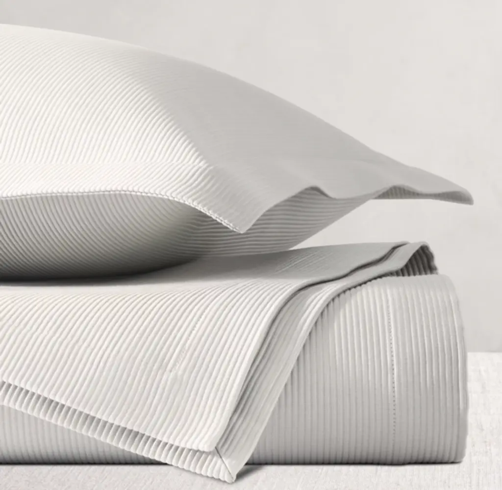 FREE SHIPPINGExquisitely refined yet invitingly soft, our bedding is crafted in the Florentine studio of textile master Carlo Bertelli. Tailored of premium long-staple cotton, skilled artisans employ traditional matelassé looms to weave the ultra-fine shadow stripes, which give each piece its visual rhythm, rich texture and beautiful drape. Flawlessly finished with a classic hemmed border, the coverlet offers all-season versatility.As head of his family's famed atelier in Florence, Carlo Bertelli honors the Italian art and craft of producing the world's finest linens. A third-generation textile master, Bertelli's passion for artisanal Italian craftsmanship melds old-world tradition with modern innovation to create impeccably tailored bedding with unsurpassed luxury.