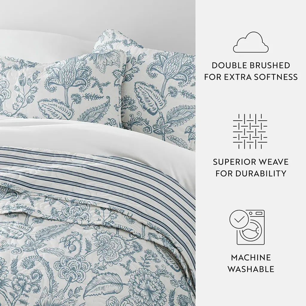 Give your room a comfy new addition with this super soft reversible microfiber quilt and sham set. We've generously filled it with artificial down, and each piece is double brushed to give it that super soft, cozy feel. The beautiful, subtle quilted stitchings add dimension and a gorgeous touch to any bedroom. Spun from our premium yarns, this set is twice as strong as cotton, wrinkle resistant and a perfect option for those with allergies or sensitive skin. The reversibility gives each side its own unique look. Available in a variety of beautiful designer patterns, making it easy to refresh any bedroom.