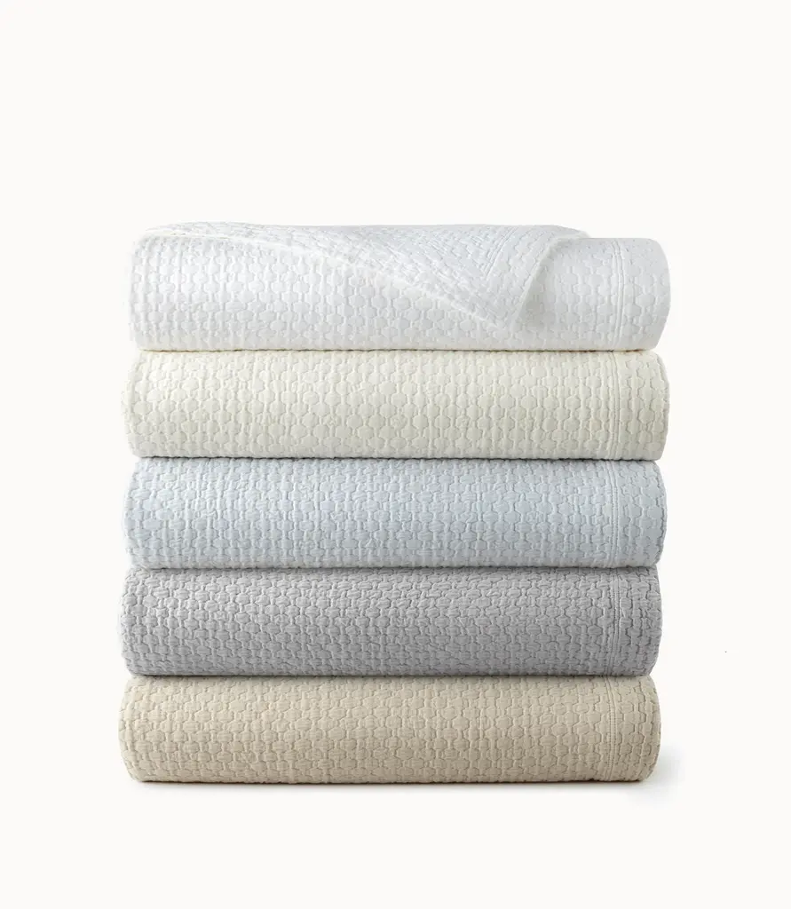 Our Juliet Matelassé Coverlet is a long time favorite. Its textured basket weave design and garment-washed finish make it soft and sumptuous. Available in five favorite neutrals to go with all of your Peacock Alley bedding.
