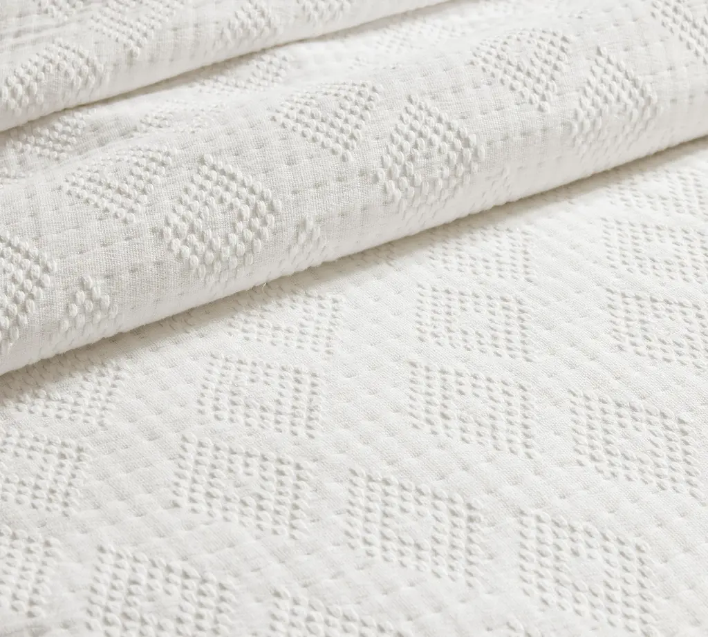 The perfect year-round layer, Layla effortlessly transitions through seasons. In warmer months, use it on its own for lightweight comfort, or place it atop a duvet when the temperature drops. Made from soft, breathable cotton, it's jacquard woven for a beautifully textured feel.