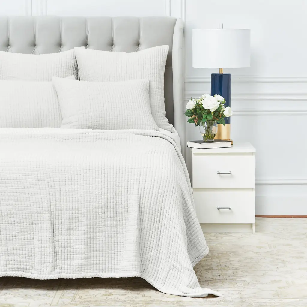 Lecce is the epitome of understated elegance crafted from long-staple cotton in a luxurious coverlet weave. Its simple textured brick pattern adds depth and warmth transforming any bed into a sanctuary of calm.