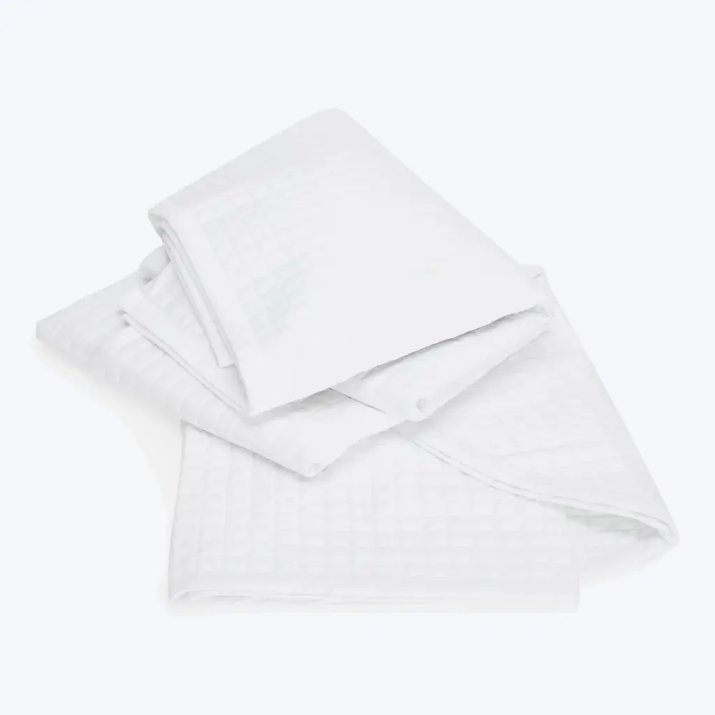 The Masaccio Quilted Coverlet combines timeless Tuscan elegance with modern functionality, crafted in Italy by Signoria Firenze. Encasing a layer of warm polyester, the 300 thread count sateen exterior is delicately overstretched with a contemporary square design, offering a soft, light, and durable feel perfect for year-round comfort. Reversing to solid cotton percale and finished with a graceful sateen border and rounded corners, this coverlet merges luxurious aesthetics with practical versatility. Available in a wide array of sophisticated colors to complement your existing Signoria bedding, the Masaccio is offered in Twin, Queen, and King sizes, bringing understated refinement to any bedroom.