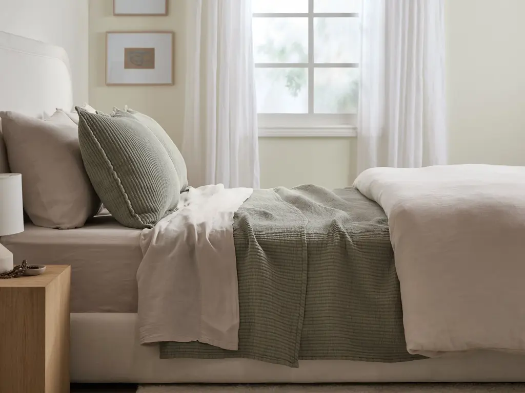 Our minimalist take on the traditional French weaving technique. This decorative coverlet functions like a quilt, but without the voluminous fill. Timeless and versatile for year-round use we love it as a decorative accent or warm layeringpiece.